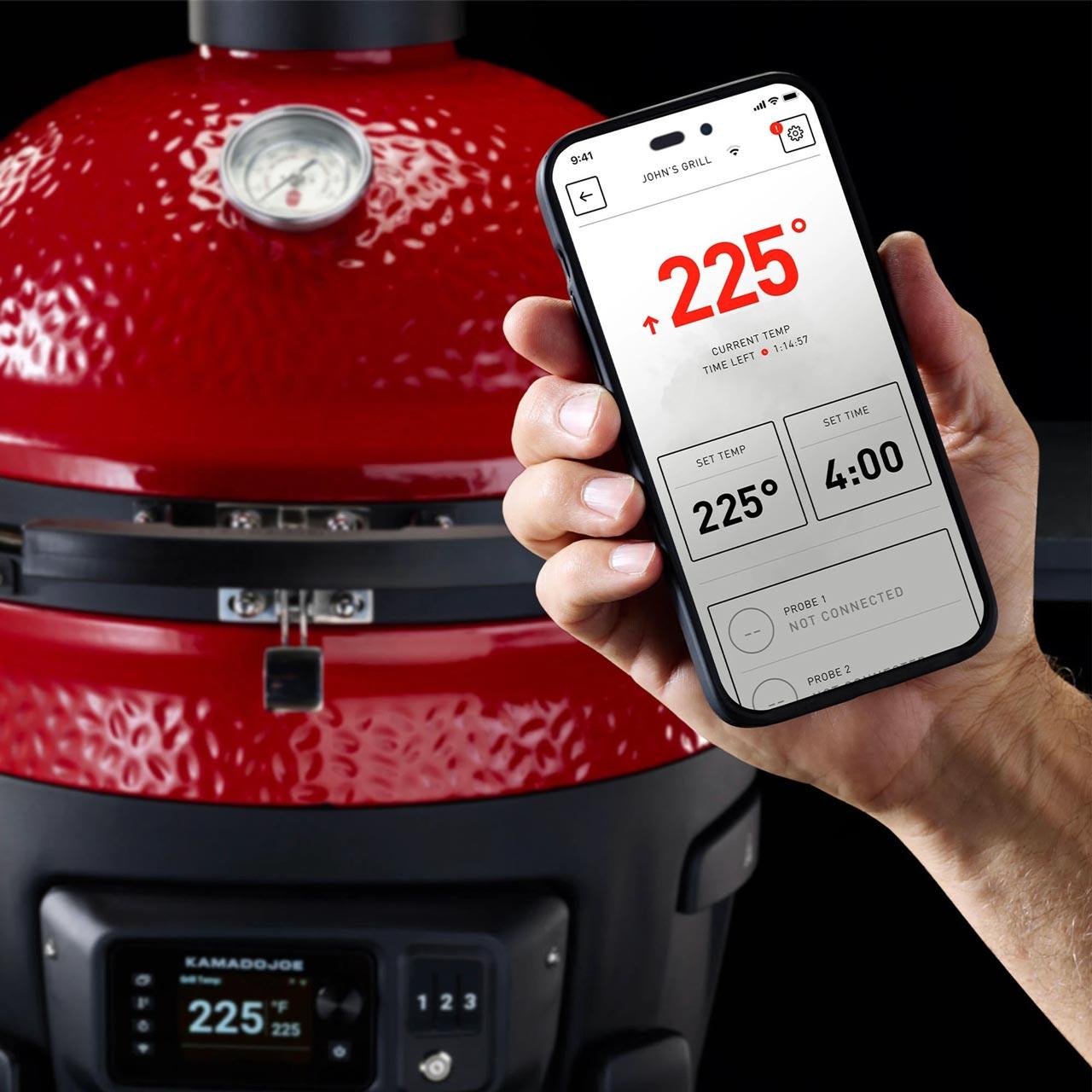 - Kamado Joe App zur Fernsteuerung von Temperatur, Zeit und Fleischsonden sowie zum Abrufen von Rezepten
