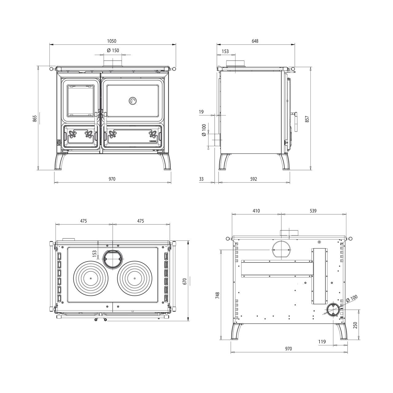 Küchenofen La Nordica Prestige Line Milly.16: Effiziente Holzheizung und moderner Feuerraum