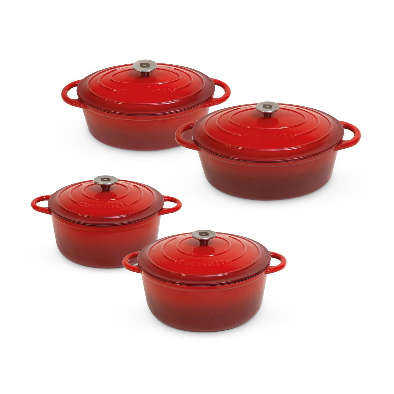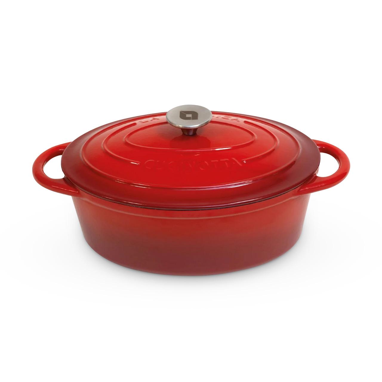 - Varianten: Rund Ø 24 cm / 4 Liter, Rund Ø 28 cm / 6 Liter, Oval Ø 29 cm / 4 Liter, Oval Ø 33 cm / 6 Liter