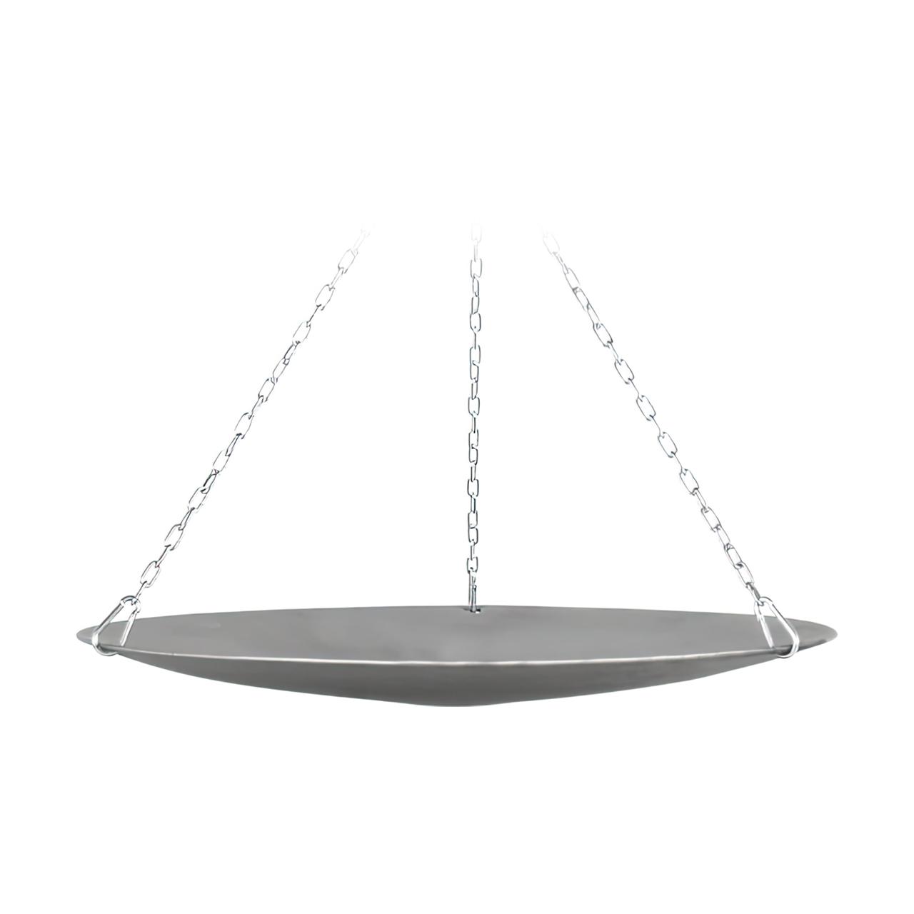 - Pfanne wird mit drei Löcher ans der Kette mit Karabinerhaken befestigt