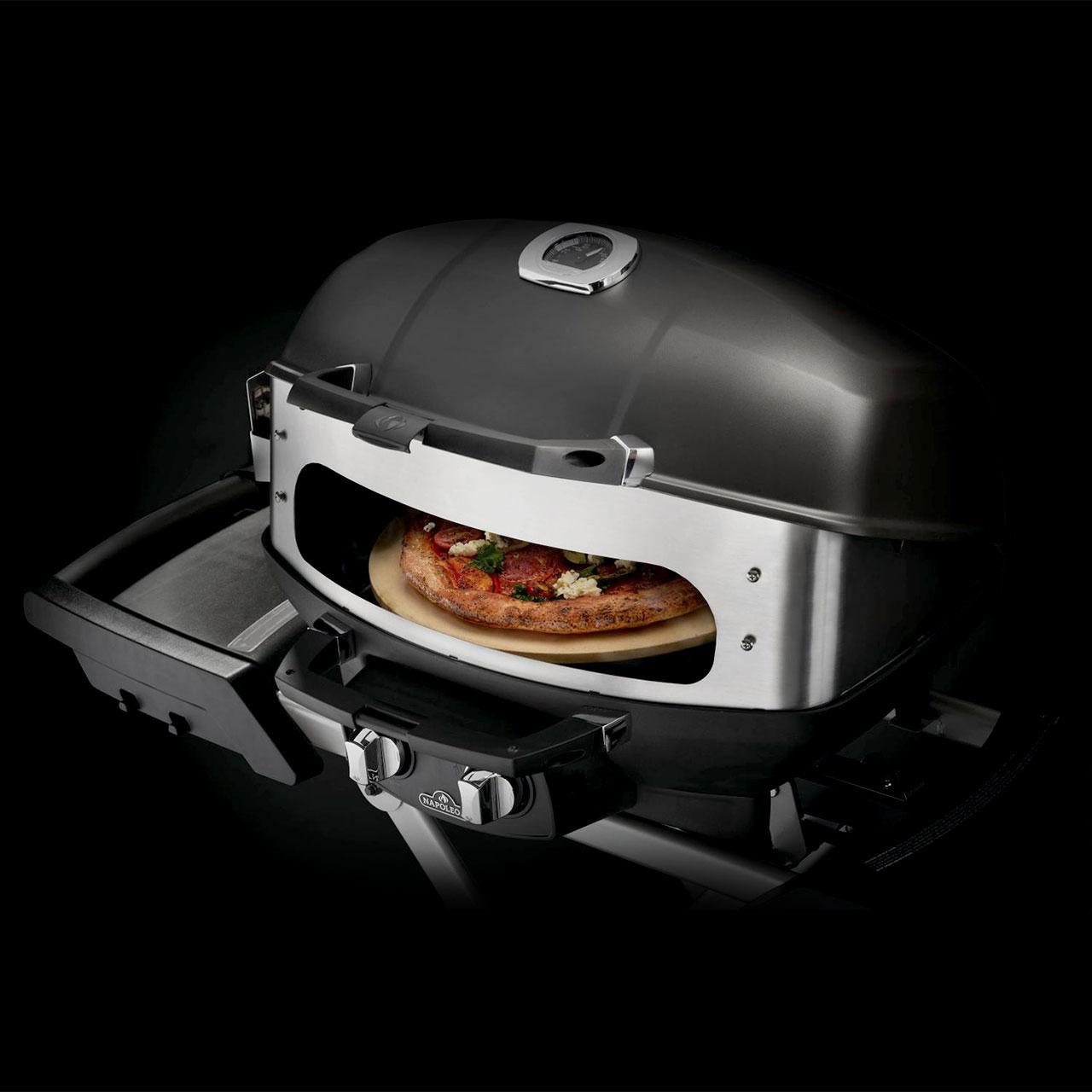 Napoleon TravelQ Pizzaofen & Drehspieß-Kit: Genießen Sie knusprige Pizzen und leckere Gerichte vom Drehspieß.
