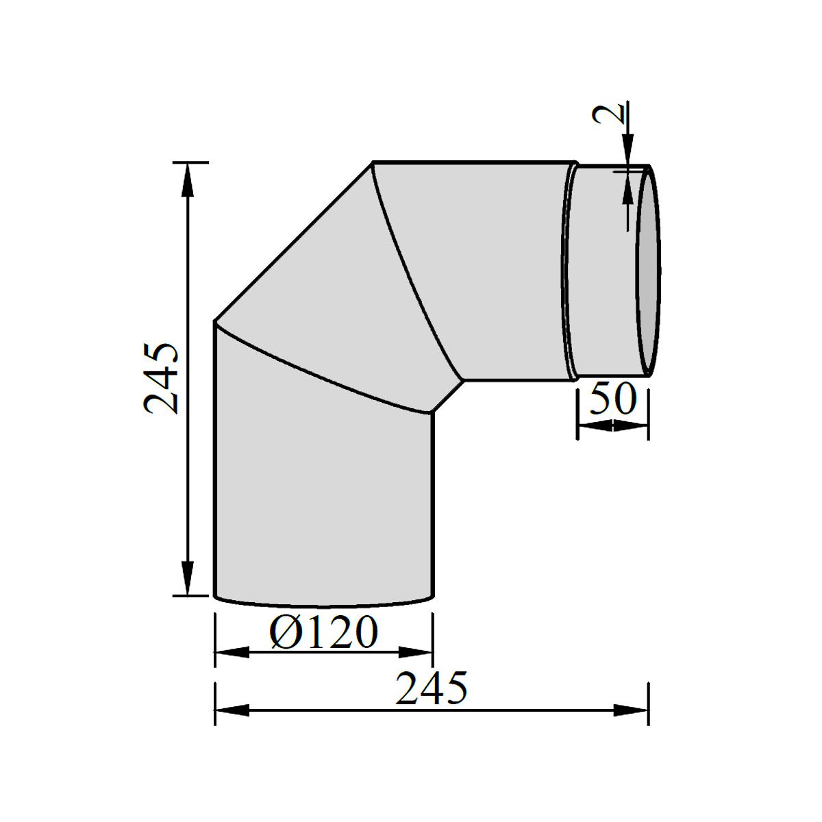 Ofenrohr Bogen 3tlg. starr DN 120 mm 90° in Schwarz