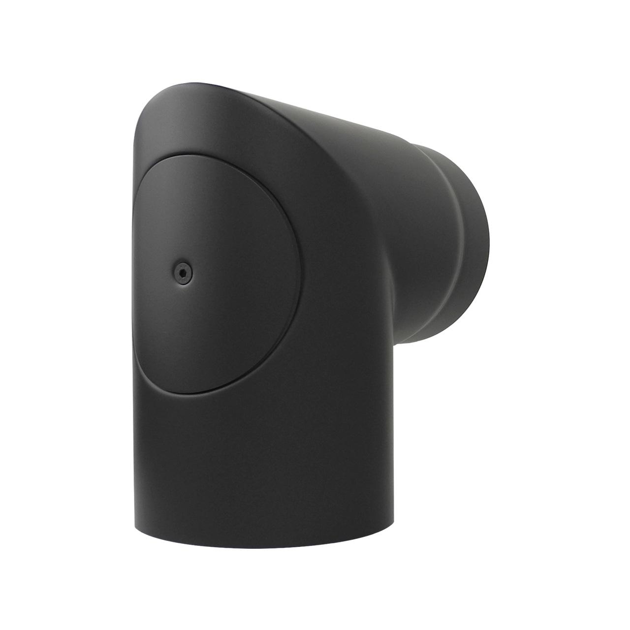 Ofenrohr Bogen 2tlg. starr geschliffen mit Tür DN 130 mm 90° in Schwarz