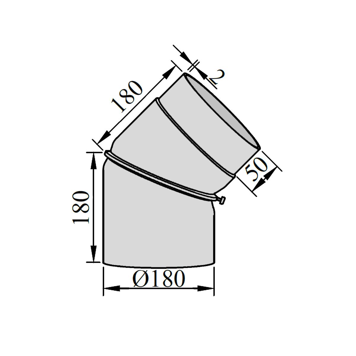 Ofenrohr Bogen 2tlg. verstellbar DN 180 mm 45° in Schwarz