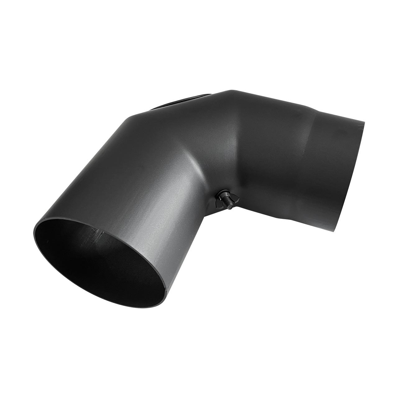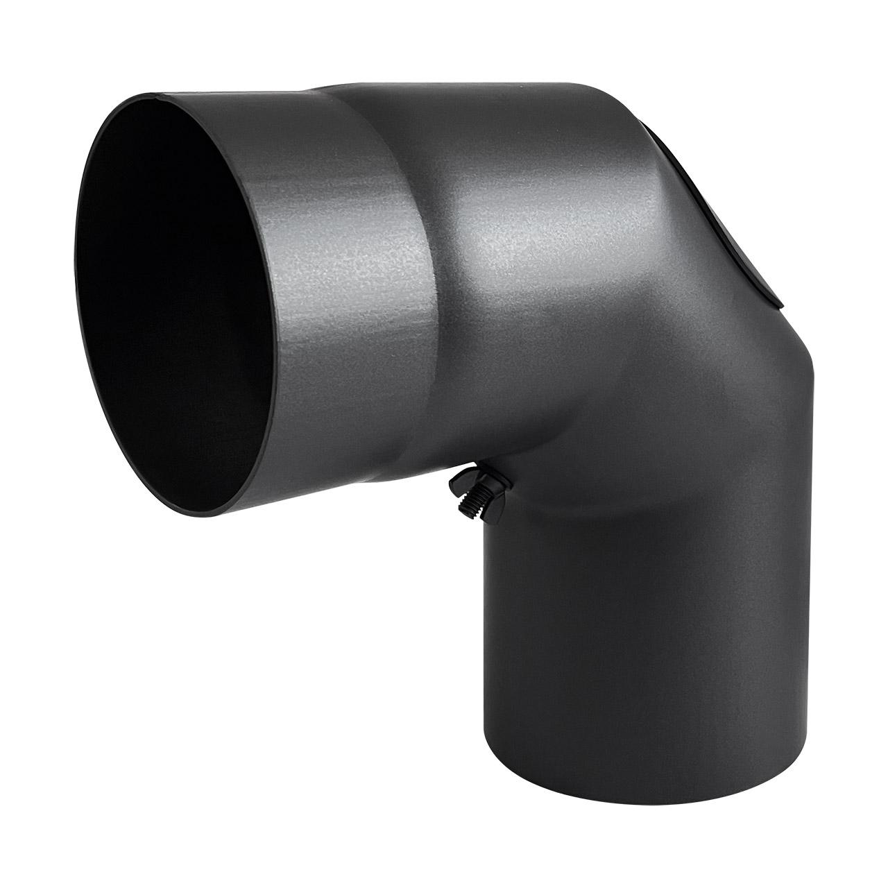 Ofenrohr Bogen 3tlg. starr geschliffen mit Tür DN 130 mm 90° in Schwarz