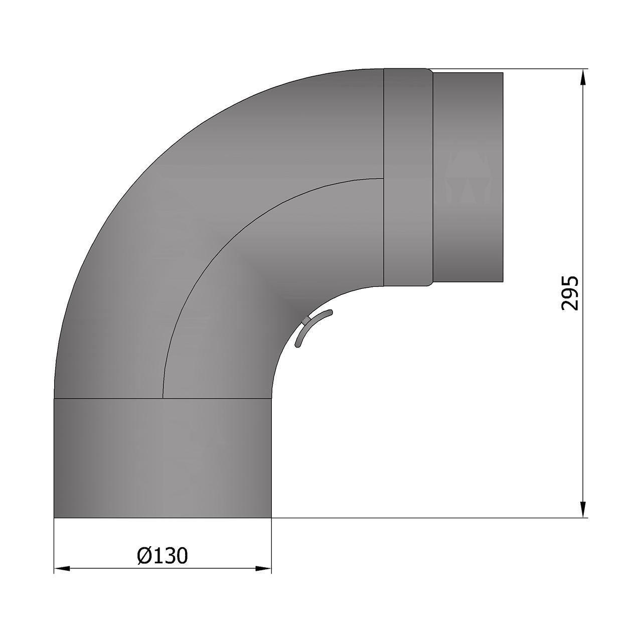 Ofenrohr Bogen gezogen mit Tür DN 130 mm 90° in Schwarz