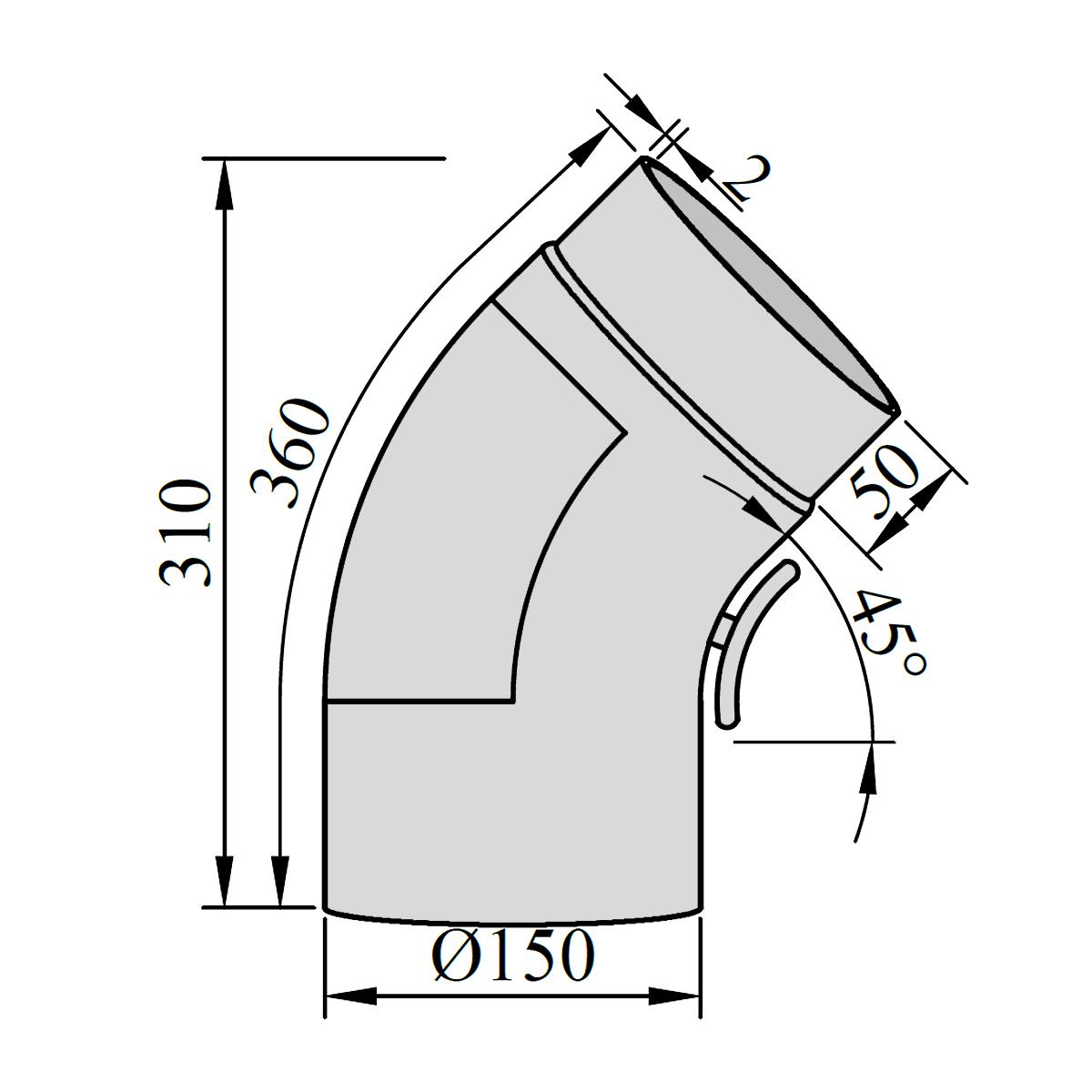 Ofenrohr Bogen gezogen mit Tür DN 150 mm 45° in Schwarz
