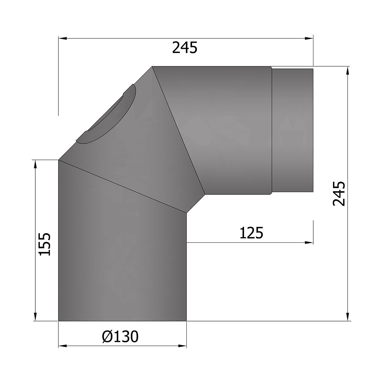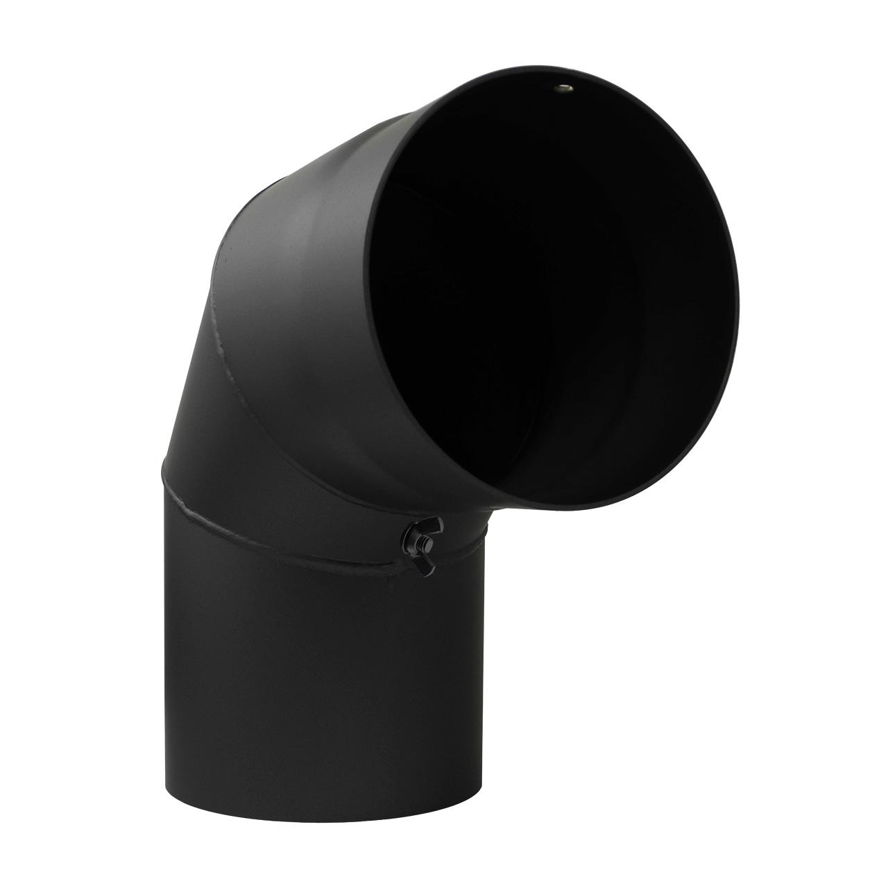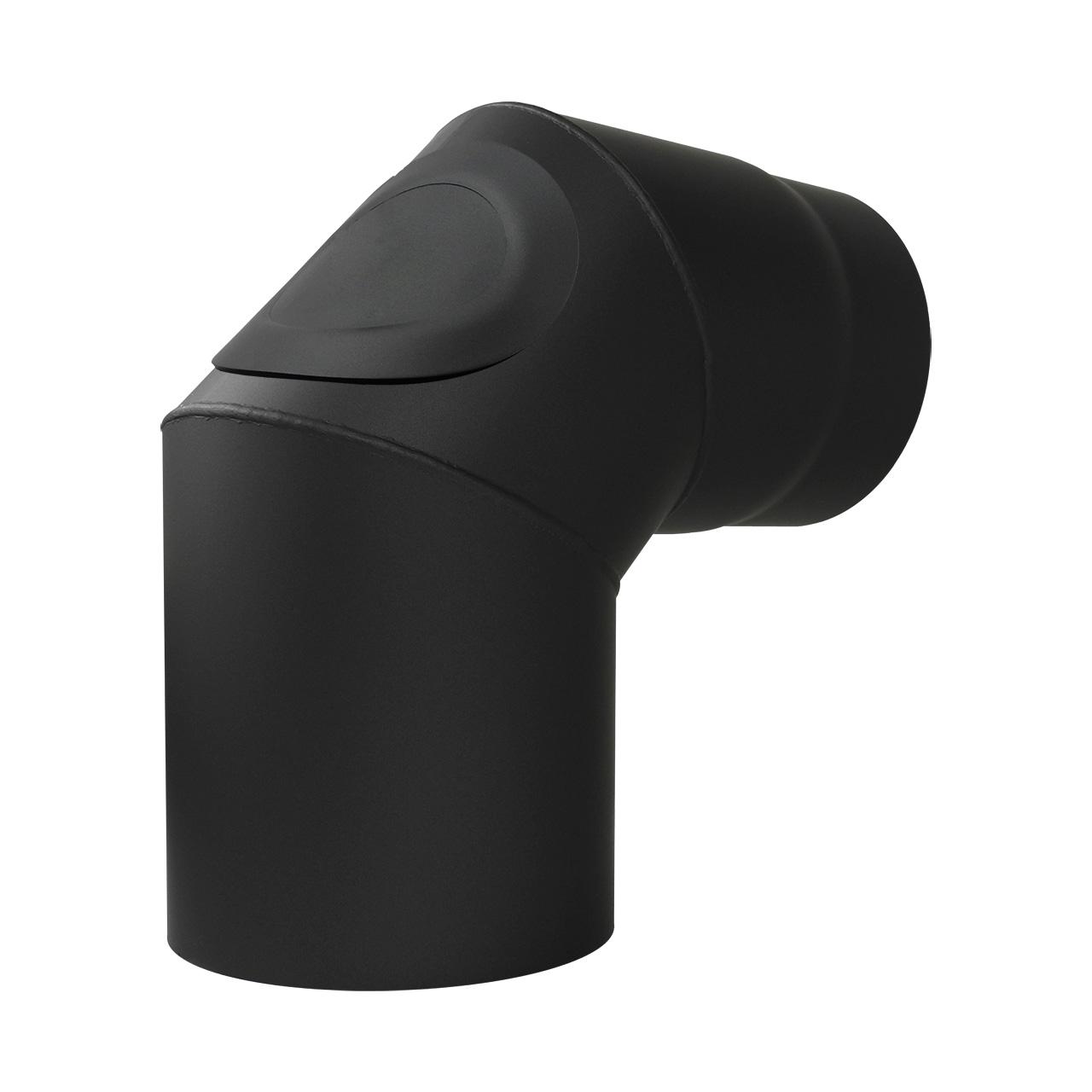 Ofenrohr Bogen 3tlg. starr mit Tür DN 130 mm 90° in Schwarz