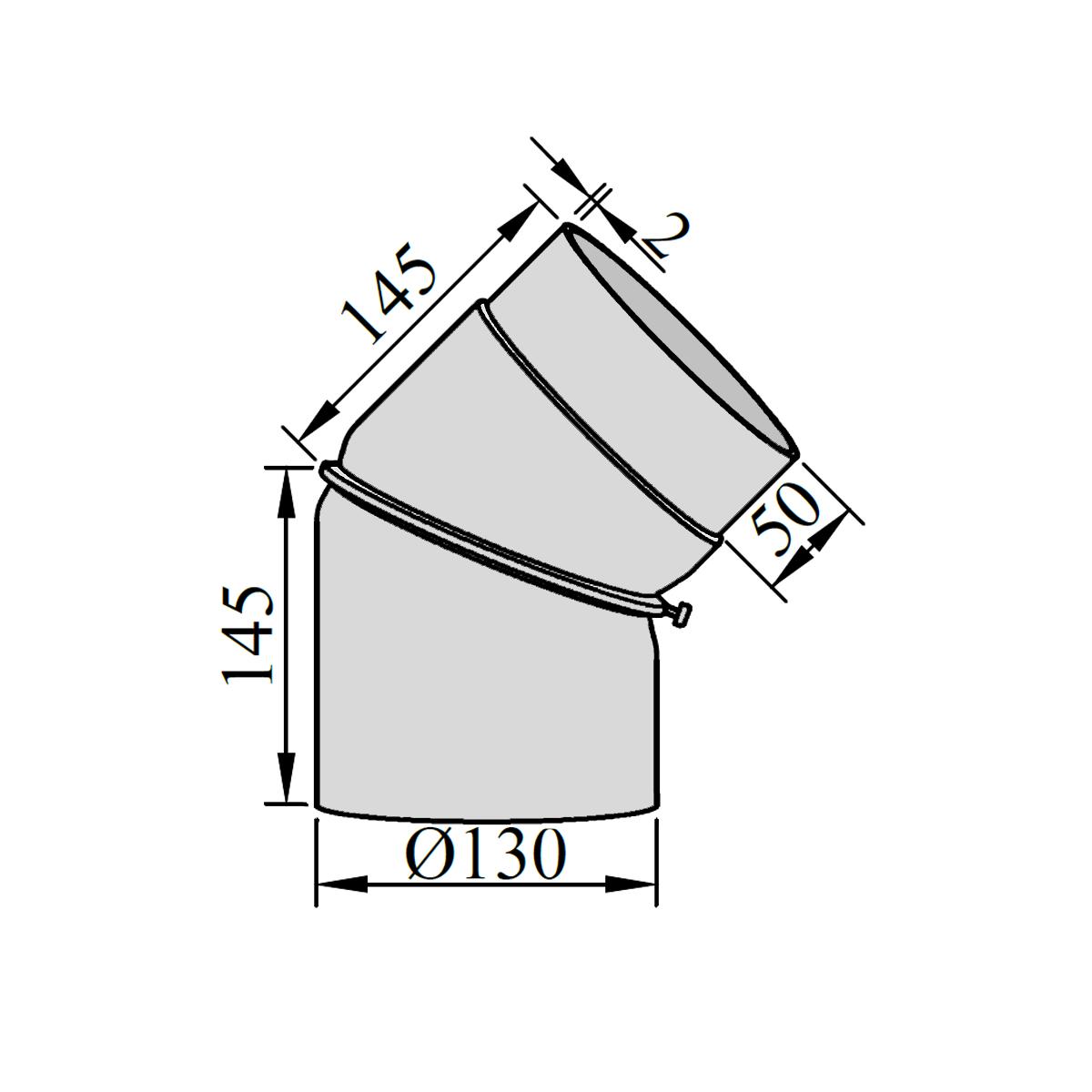 Ofenrohr Bogen 2tlg. verstellbar DN 130 mm 45° in Schwarz
