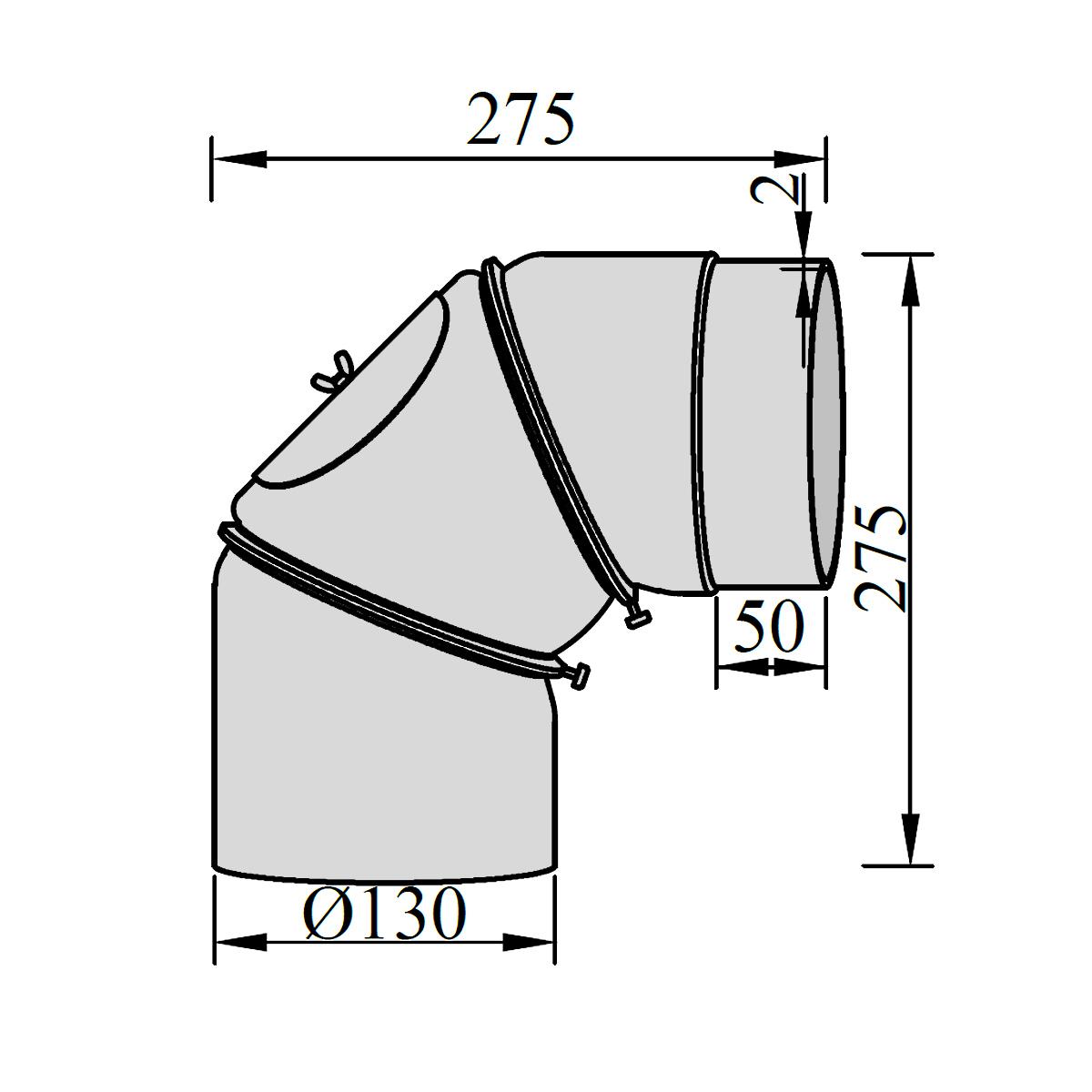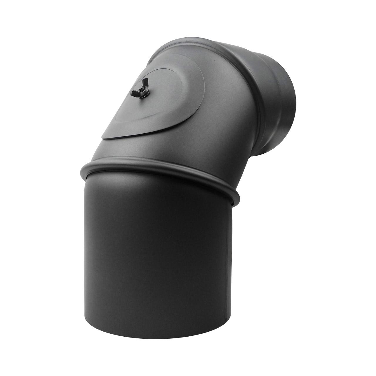 Ofenrohr Bogen 3tlg. verstellbar mit Tür DN 130 mm 90° in Gussgrau