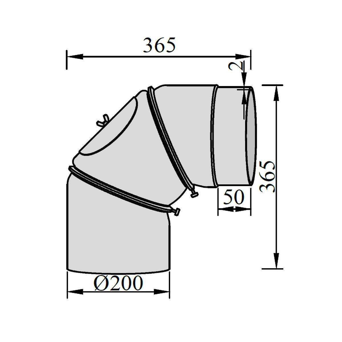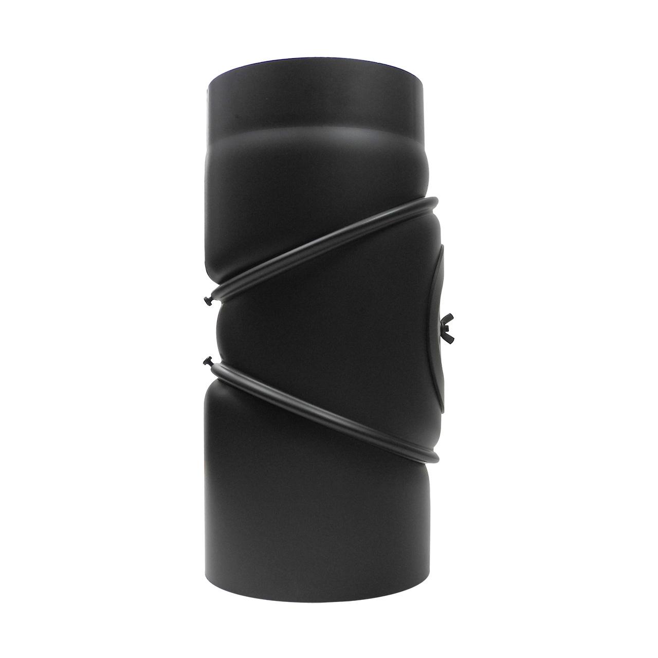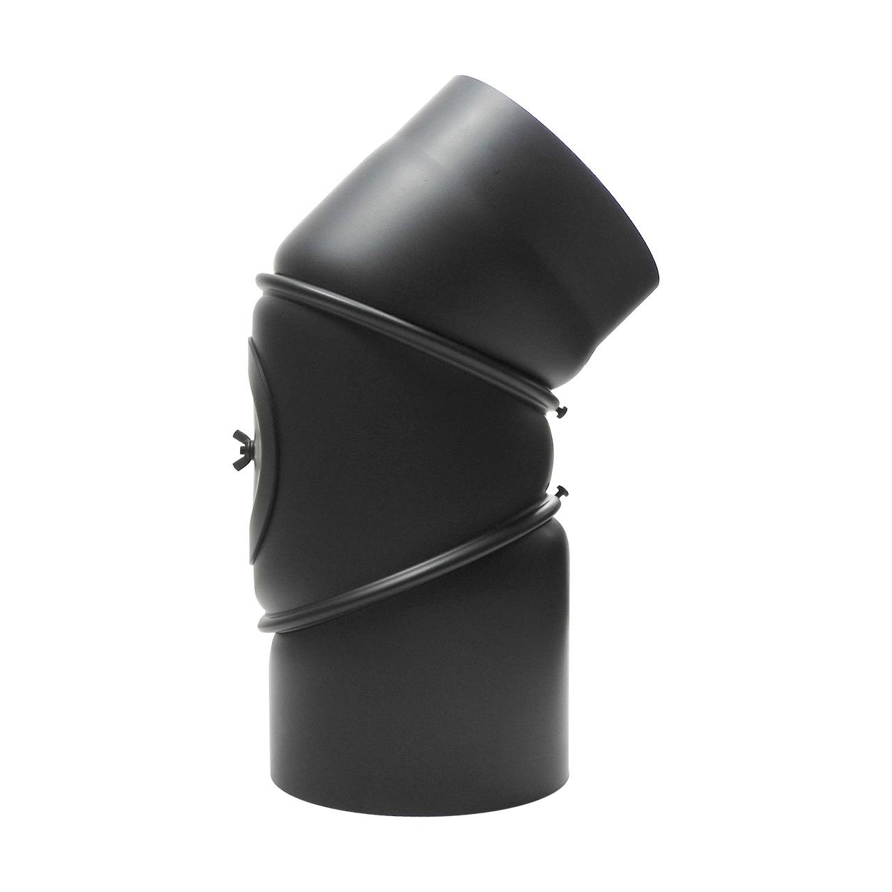 Ofenrohr Bogen 3tlg. verstellbar mit Tür DN 200 mm 90° in Schwarz