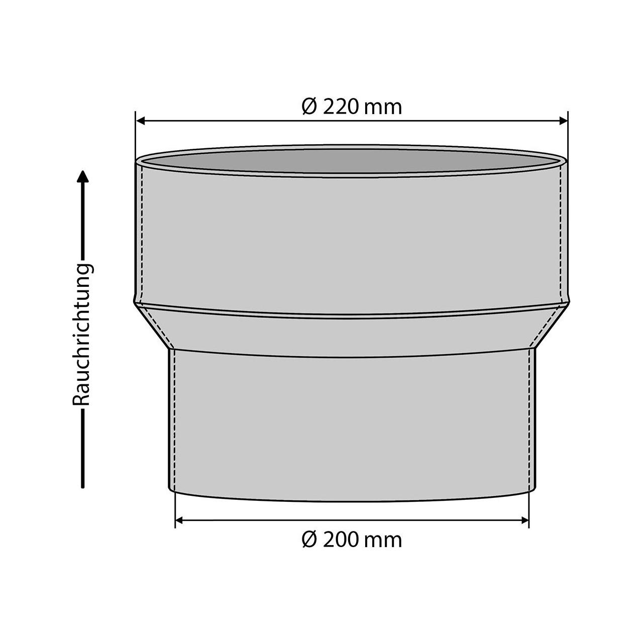 - Ofenanschluss 220 Schornsteinanschluss 200 mm: benötigt wird eine Reduzierung für Ofenrohre von 220 auf 200 mm