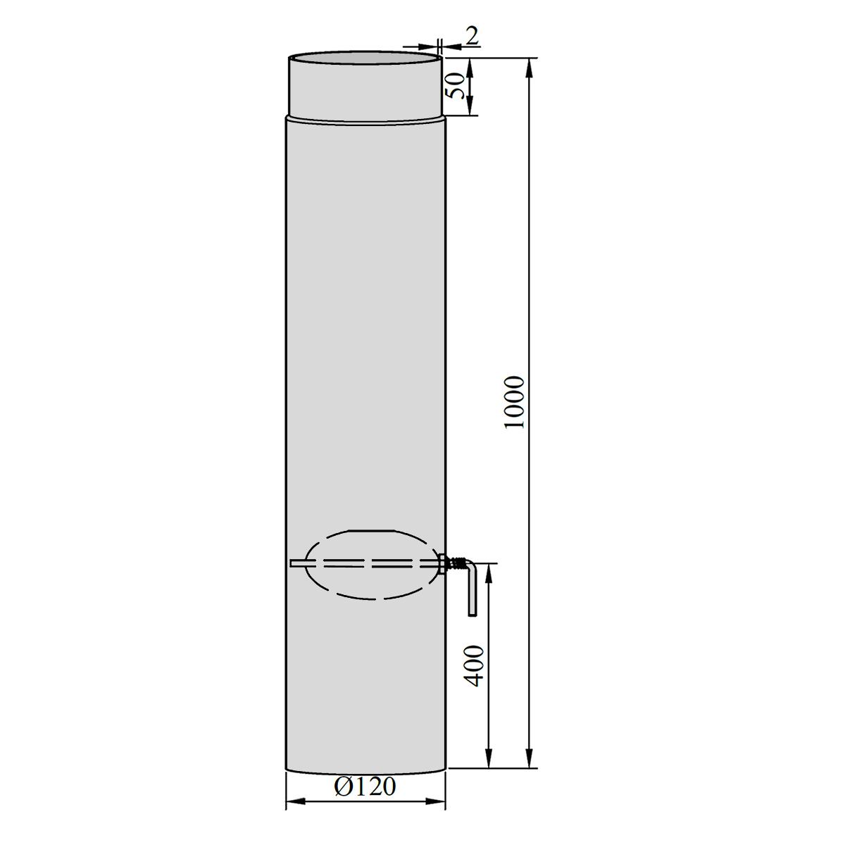 Ofenrohr mit Drosselklappe DN 120 mm Länge 1000 mm in Schwarz