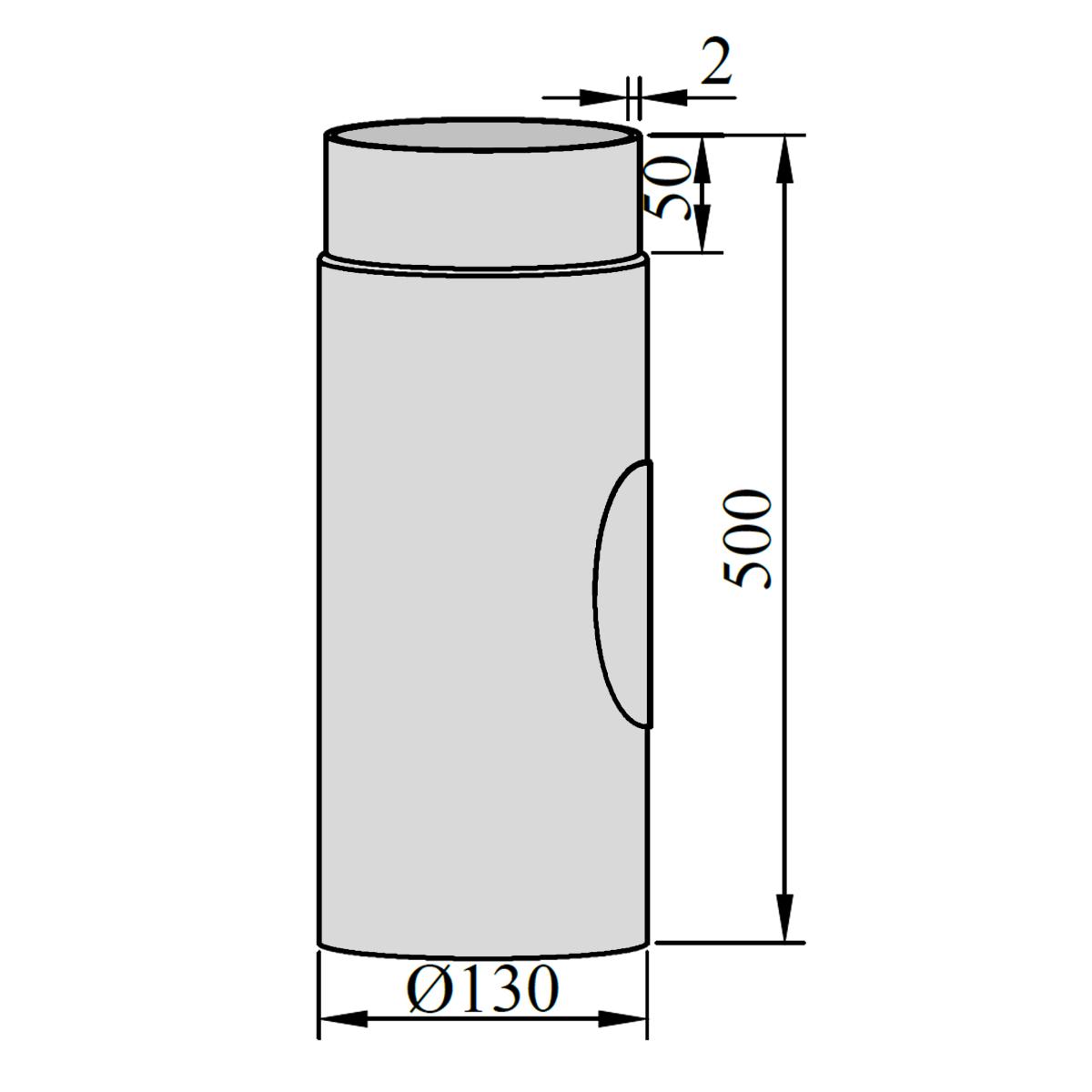 Ofenrohr mit Putztür DN 130 mm Länge 500 mm in Gussgrau
