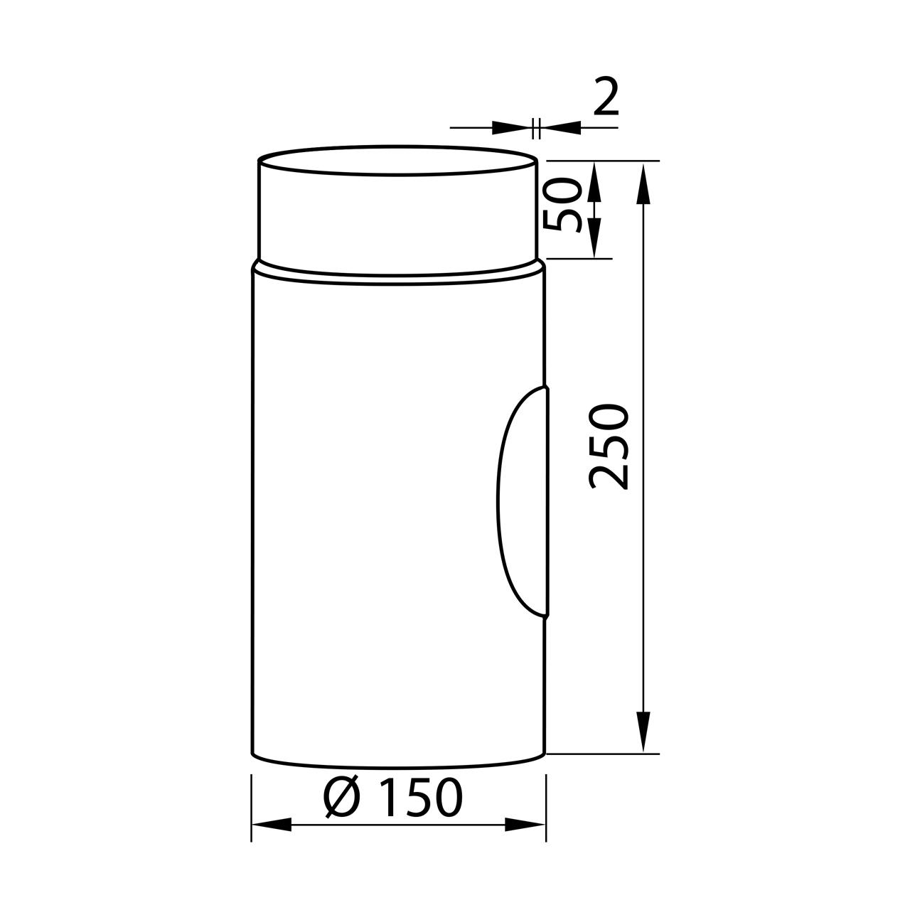 Ofenrohr mit Putztür DN 150 mm Länge 250 mm in Schwarz