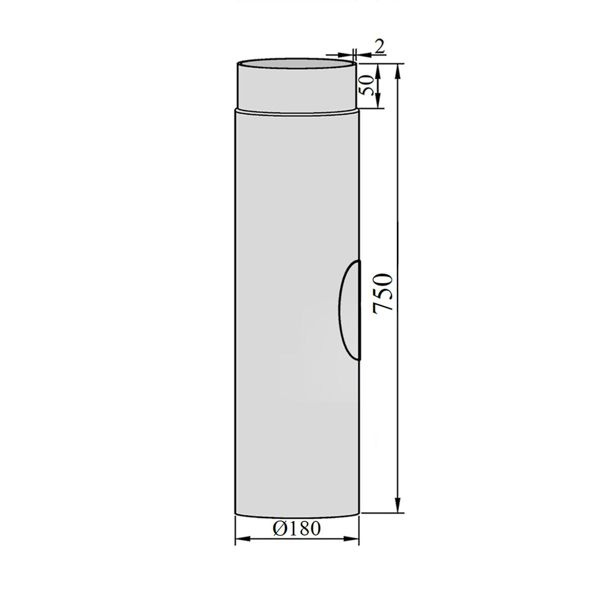 Ofenrohr mit Putztür DN 180 mm Länge 750 mm in Gussgrau
