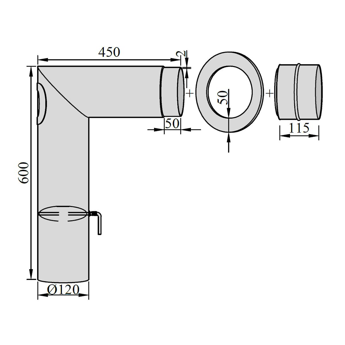 - mit Reinigungsöffnung und Drosselklappe