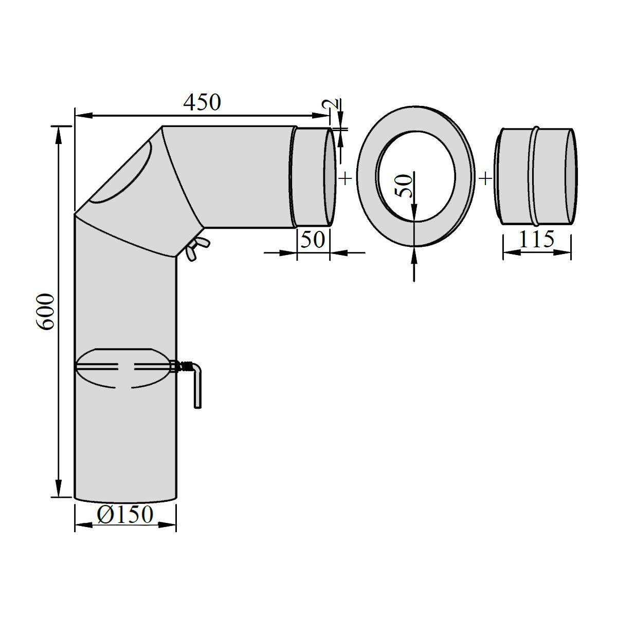 - mit Reinigungsöffnung und Drosselklappe