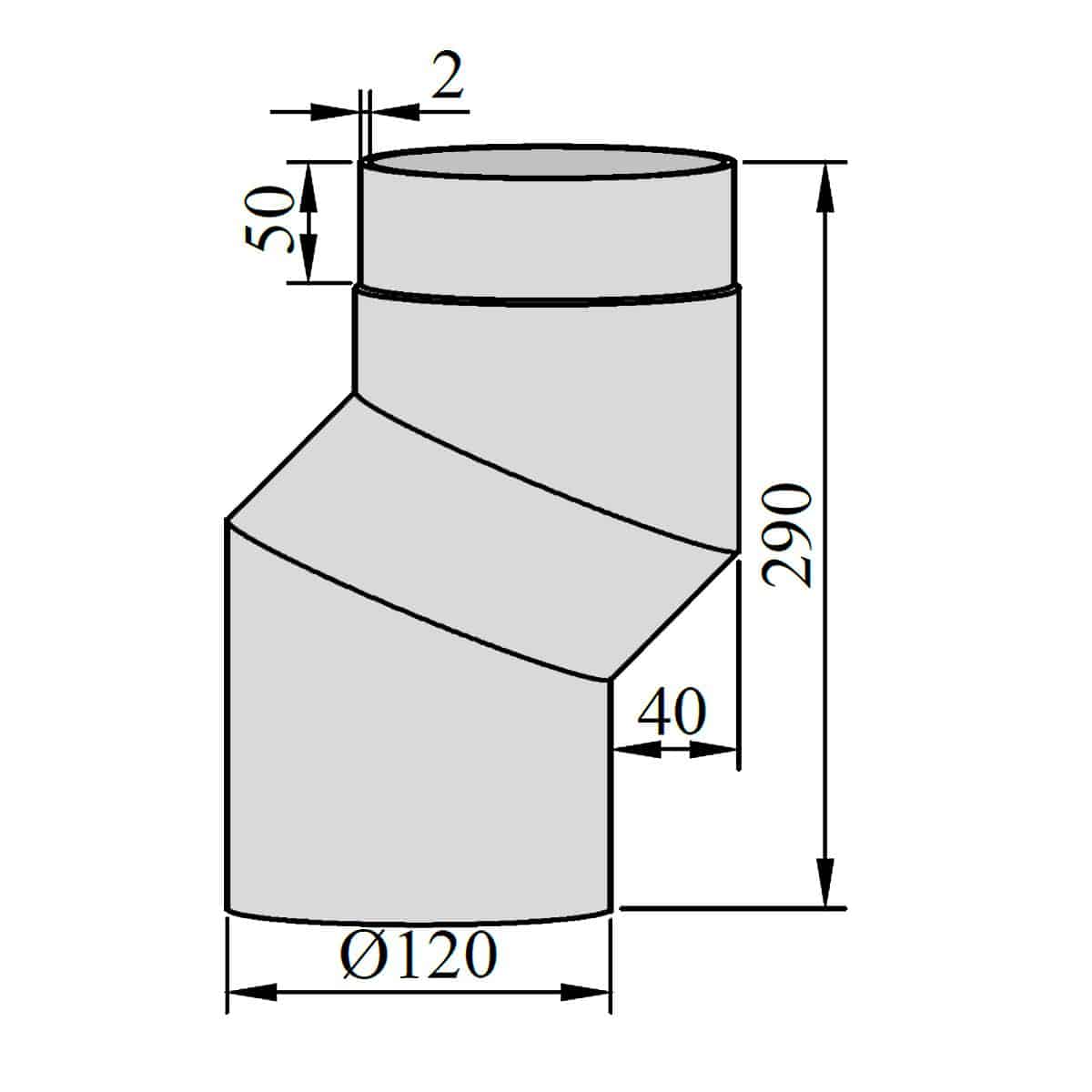 Bauteil: Versatzbogen für Ofenrohr- ermöglicht für einen Versatz von 40 mm (Mitte Rauchrohr)