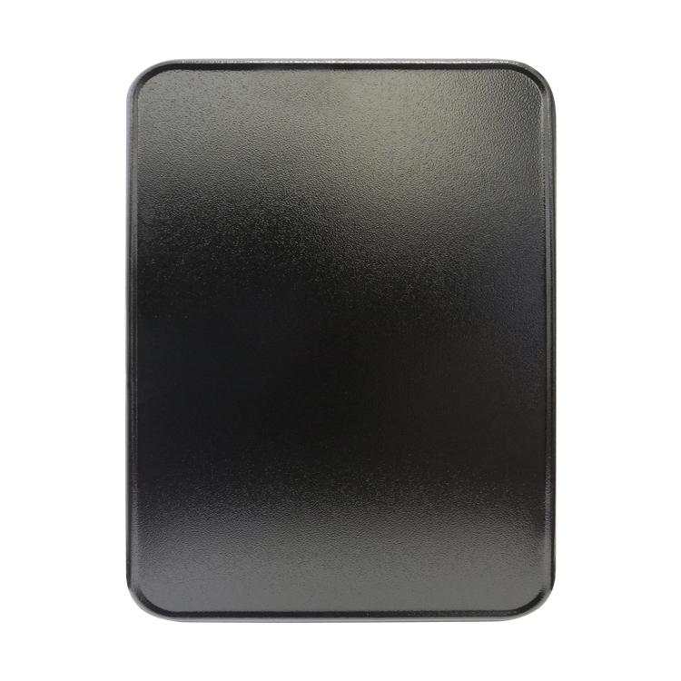Es hat einen schönen schwarzen Look. Die Oberfläche ist rau und der Rand ist als kleine Erhebung gestaltet. Der große Vorteil des Ofenblechs ist natürlich der Preis: Es kostet nur einen Bruchteil einer Glasplatte aus Sicherheitsglas. Die Platte ist biegsam und wird einfach vor Ihren Ofen gelegt. Sie eignet sich ebenfalls sehr gut als Unterlage für einen Brennholzkorb oder das Kaminbesteck.