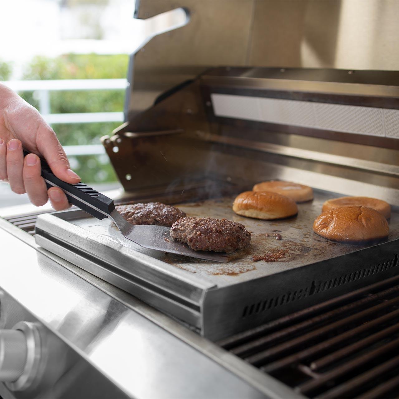 - mit diesem Spachtel lassen sich Burger einfach und professionell wenden