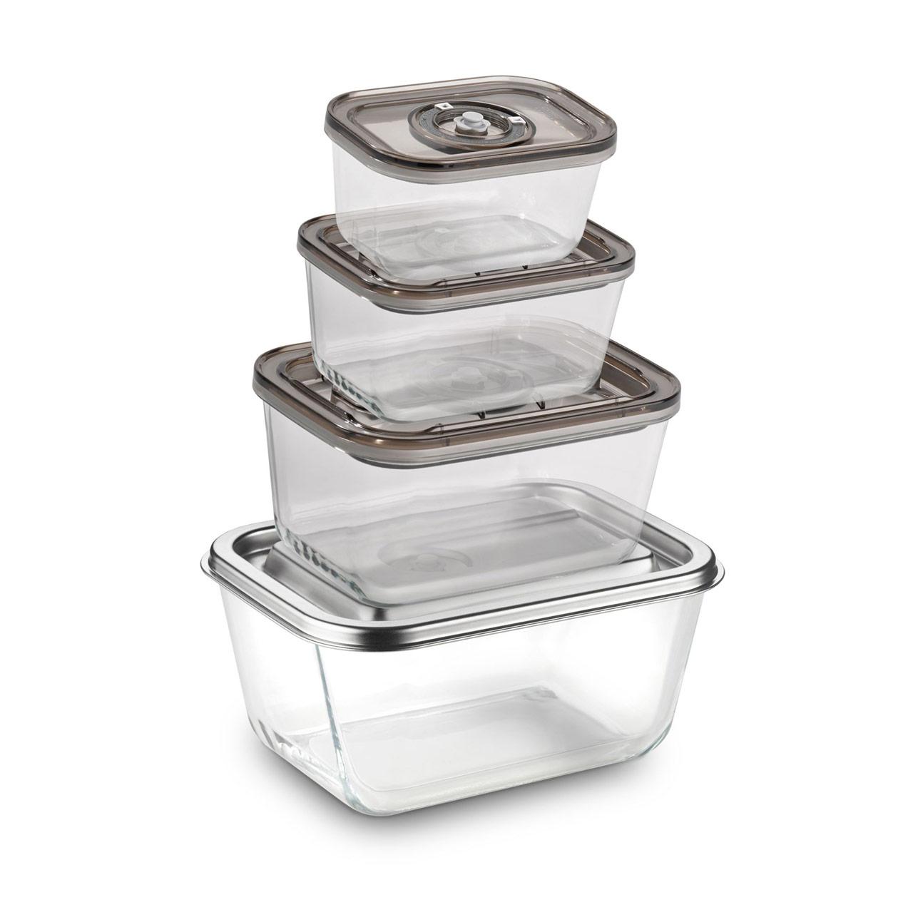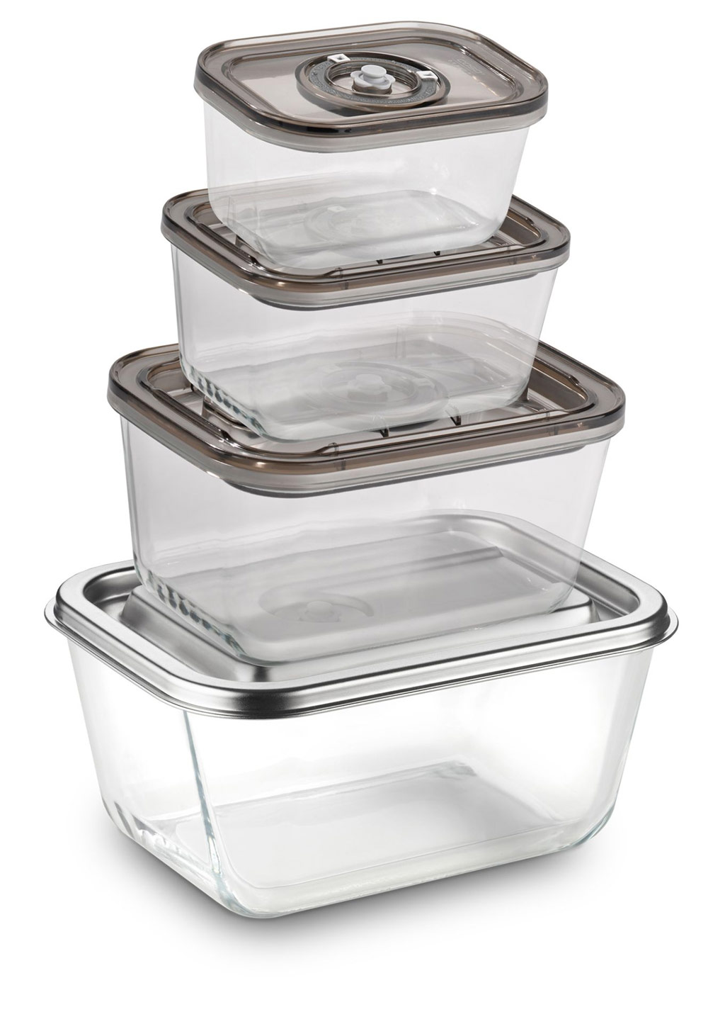 | Lieferumfang | » Vakuumierer » 4 Glasbehälter inkl. Deckel » 18 ZIP Beutel » 3 Flaschenverschlüsse » Ladestation |