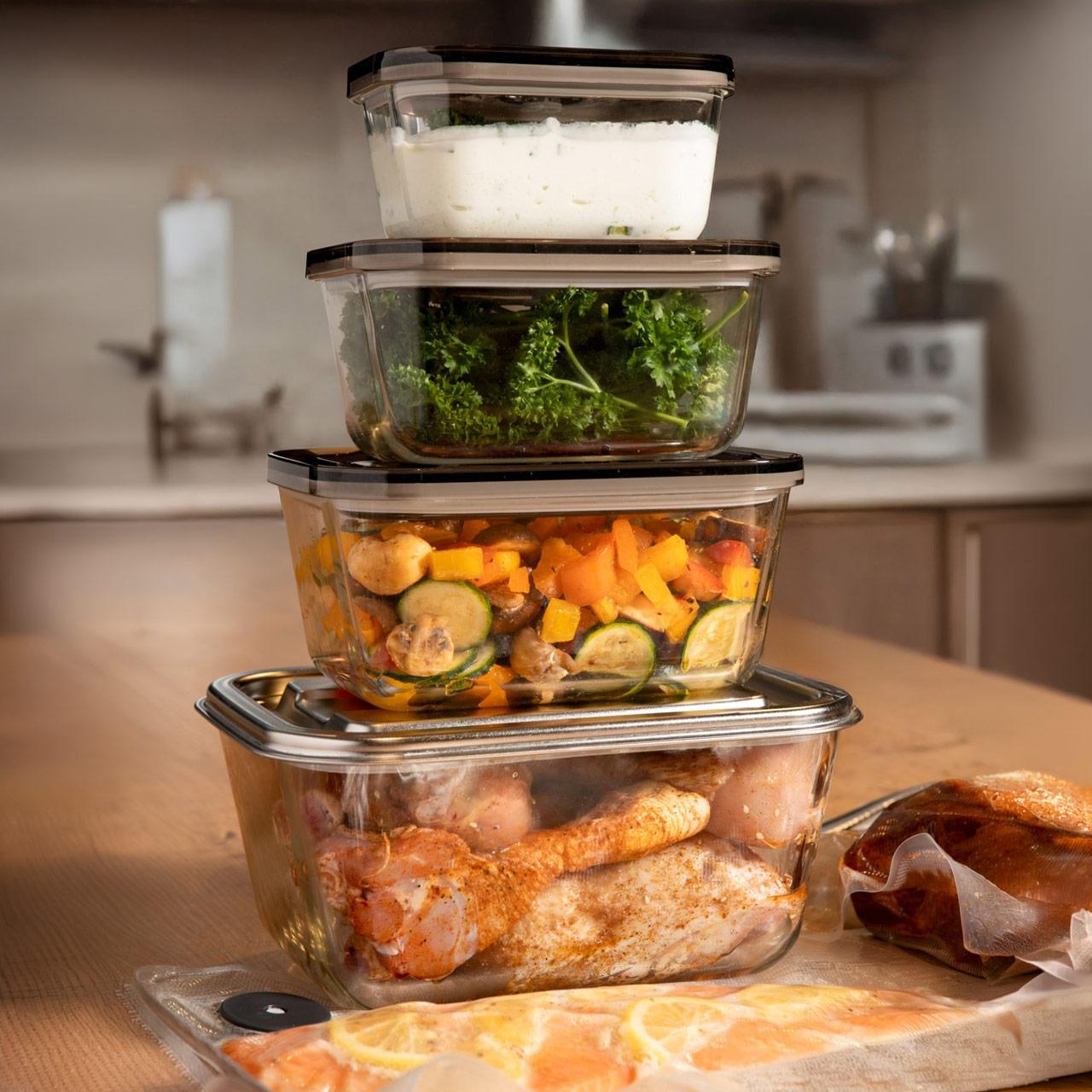 Mit dem vollautomatischen Vakuumierprozess per Knopfdruck verpacken Sie Lebensmittel schnell und zuverlässig luftdicht. So bleiben Geschmack, Struktur und Nährstoffe deutlich länger erhalten.Vielseitiges Komplettsystem für Haushalt und Grillküche