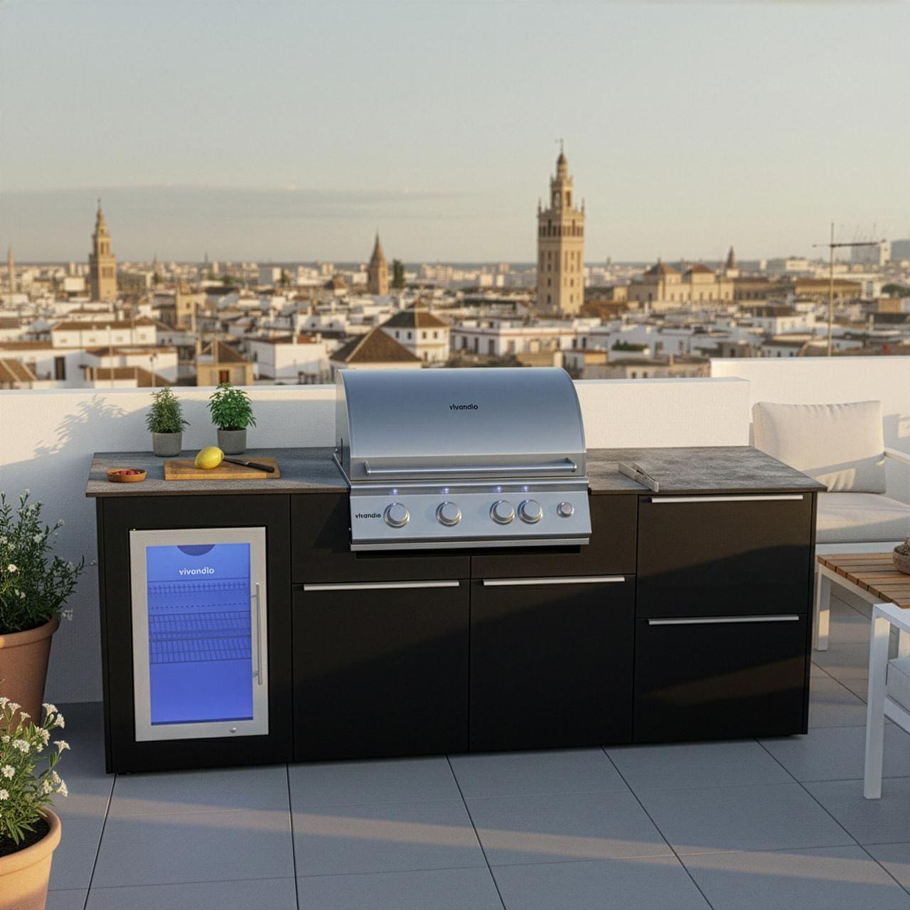 Outdoorküche. Arbeitsplatte und Einbaugeräte sind nicht im Lieferumfang enthalten.
