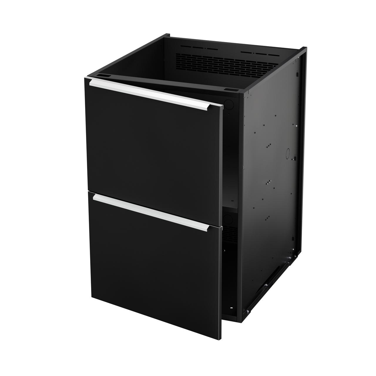 Das Outdoorküchenmodul 2x 1/2 aus der vivandio elements Serie unterteilt den Korpus in zwei gleich große Hälften und bietet dabei volle Wahlfreiheit bei der Bestückung. Jede Hälfte lässt sich unabhängig als Schublade oder Tür konfigurieren, sodass vier verschiedene Ausführungen entstehen.