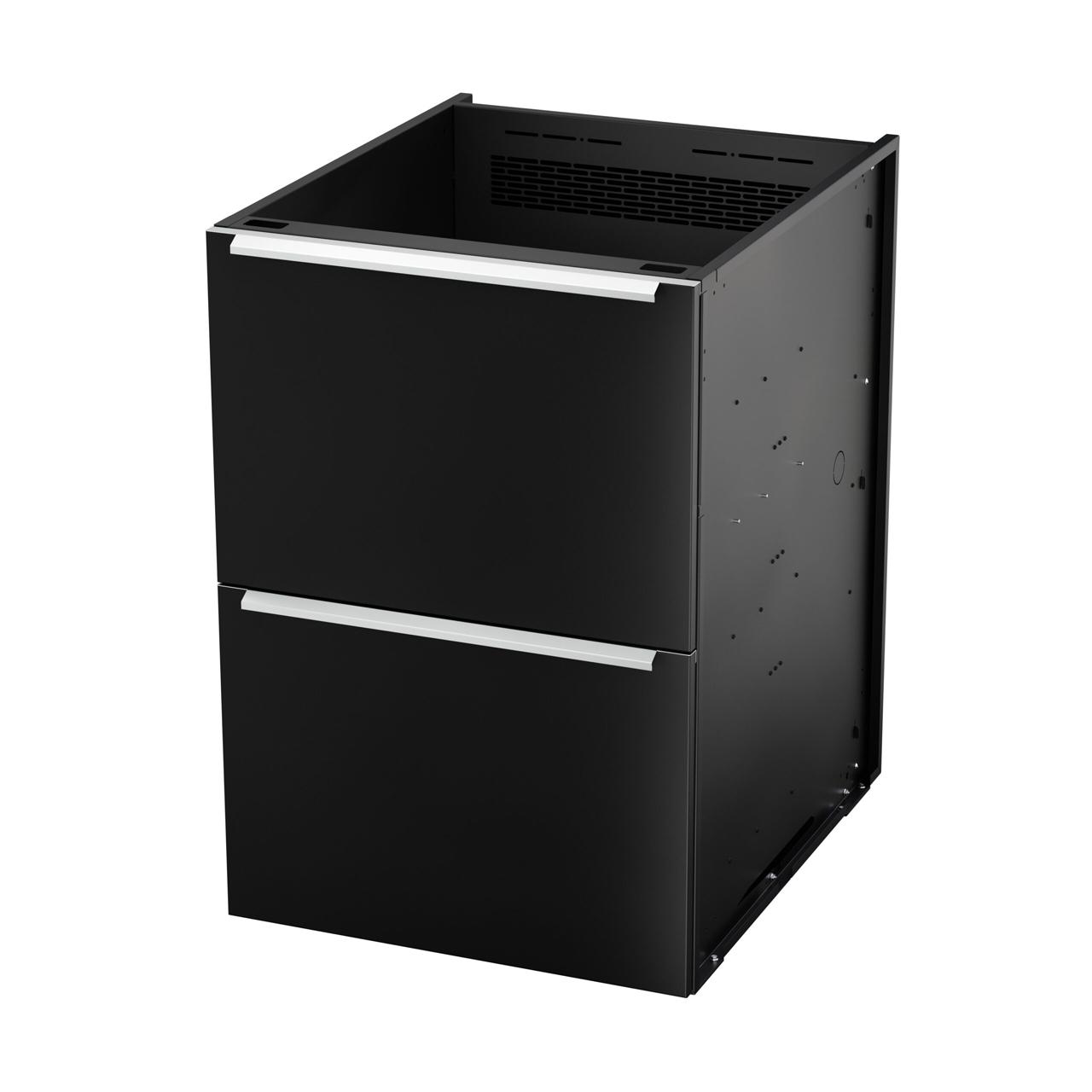 32er Möbelstandard, sodass Einsätze, Gitterkörbe und Zubehör von Drittherstellern ohne Anpassungen kompatibel sind. Das Modul fügt sich nahtlos in jede vivandio elements Konfiguration ein, ob als einzelne Erweiterung oder als Teil einer vollständigen