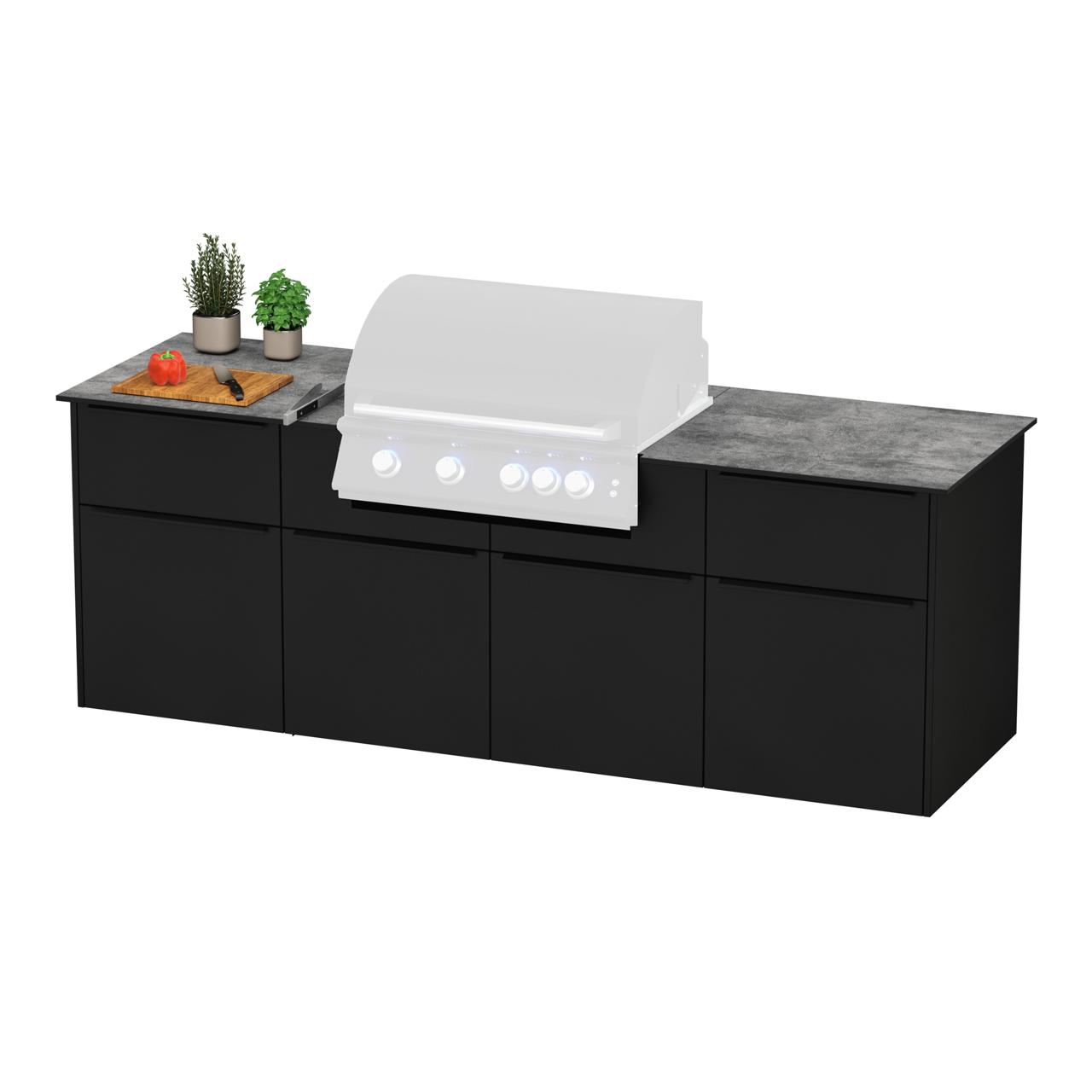 vivandio elements / Outdoorküche Madrid - Ausführung: all black - Grilloption: passend für fyre X Einbaugrill (ohne Grill)