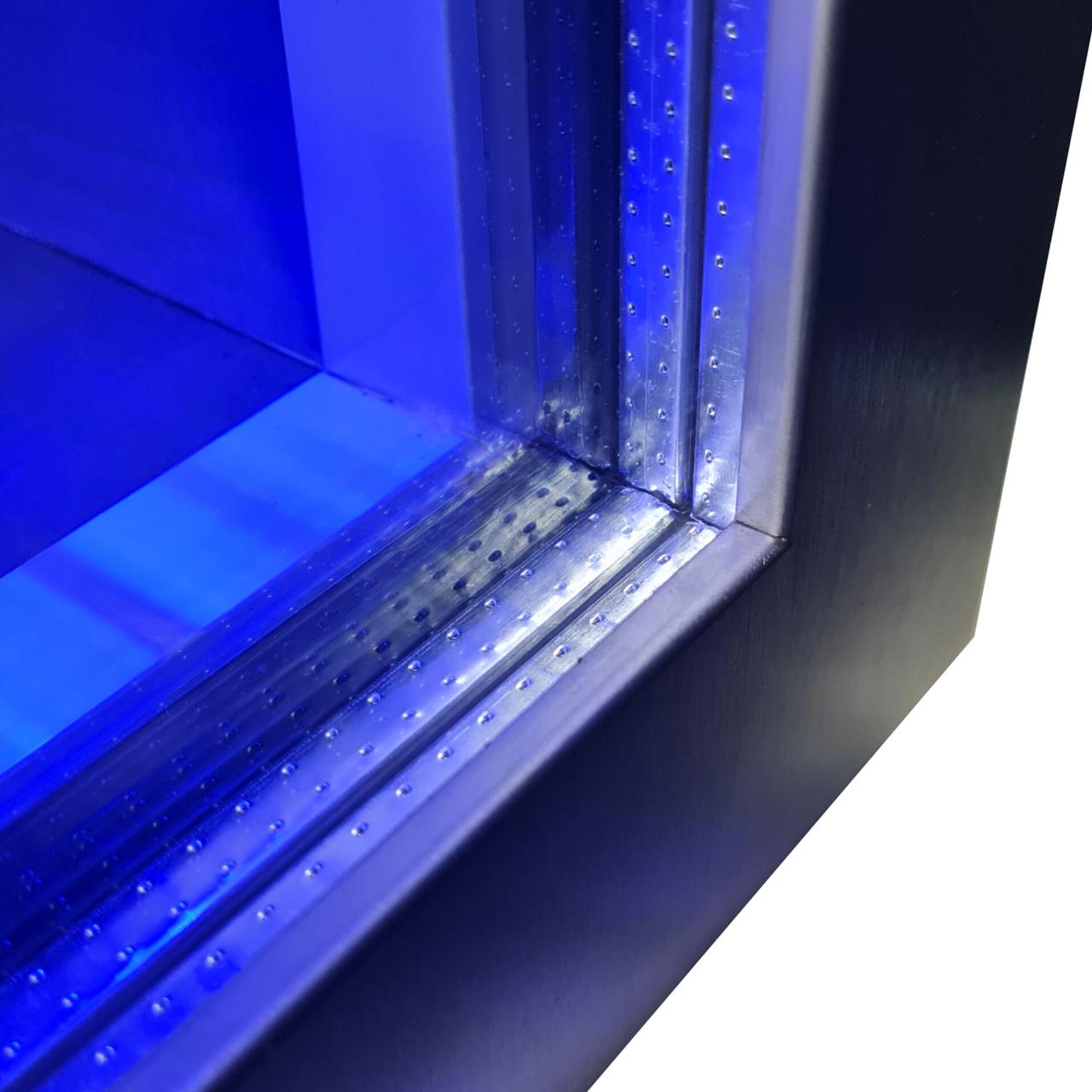 Für eine angenehme Atmosphäre sorgt die blaue LED-Innenbeleuchtung, die besonders in den Abendstunden für ein stimmungsvolles Licht sorgt. Wer lieber eine neutralere Beleuchtung bevorzugt, kann das im Lieferumfang enthaltene weiße LED-Kit problemlos austauschen.