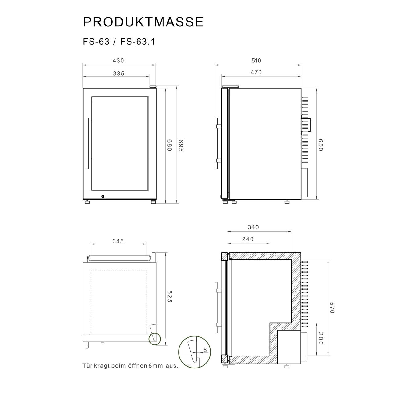 • FS-63 Outdoor Kühlschrank in gewählter Ausführung -R (Anschlag rechts, Griff links) bzw. -L (Anschlag links, Griff rechts)