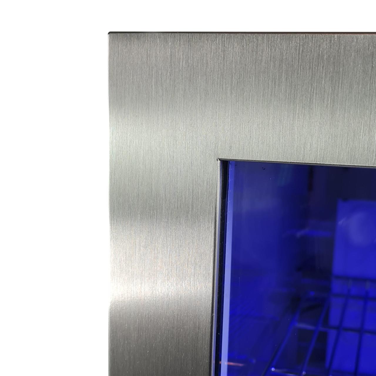 Die selbstschließende Tür mit Magnetdichtung garantiert, dass der Kühlschrank stets fest verschlossen bleibt und keine Kälte entweichen kann.  Das integrierte Türschloss bietet zusätzlich Sicherheit und Schutz, insbesondere in öffentlich zugänglichen Bereichen oder bei Verwendung im gewerblichen Bereich.