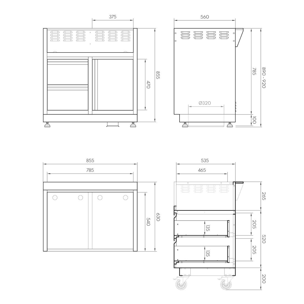 | Grillmodul ohne Grill (B x T) | 855 x 630 mm |
