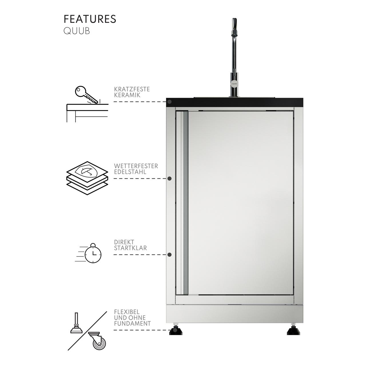 | Lieferumfang | » 1x quub Schrankmodul » 1x quub 32" Grillmodul » 1x fyre X Grillkopf IR Gen2 » 1x quub Kühlschrank-Kochmodul |