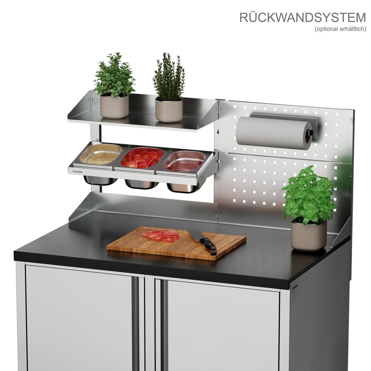 - Rückwandsystem - Die Rückwand bietet zahlreiche Gestaltungsmöglichkeiten für Ihr Einzel- oder Doppelmodul. Die Basisträger bilden dabei die Grundlage, auf der Sie nach Belieben weitere Komponenten nach Ihren Bedürfnissen kombinieren können.