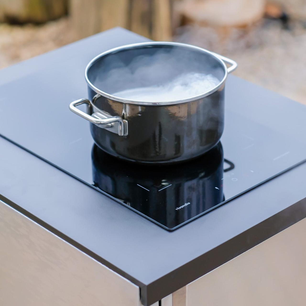 Das in das Einzelmodul integrierte Kochfeld aus Keramikglas sorgt für eine gleichmäßige Hitzeverteilung und ermöglicht eine energieeffiziente Zubereitung Ihrer Speisen. Egal, ob Sie frische Zutaten sautieren, Saucen köcheln oder einfach ein Steak anbraten möchten – das leistungsstarke Kochfeld bringt kulinarische Vielfalt in Ihren Outdoor-Bereich.