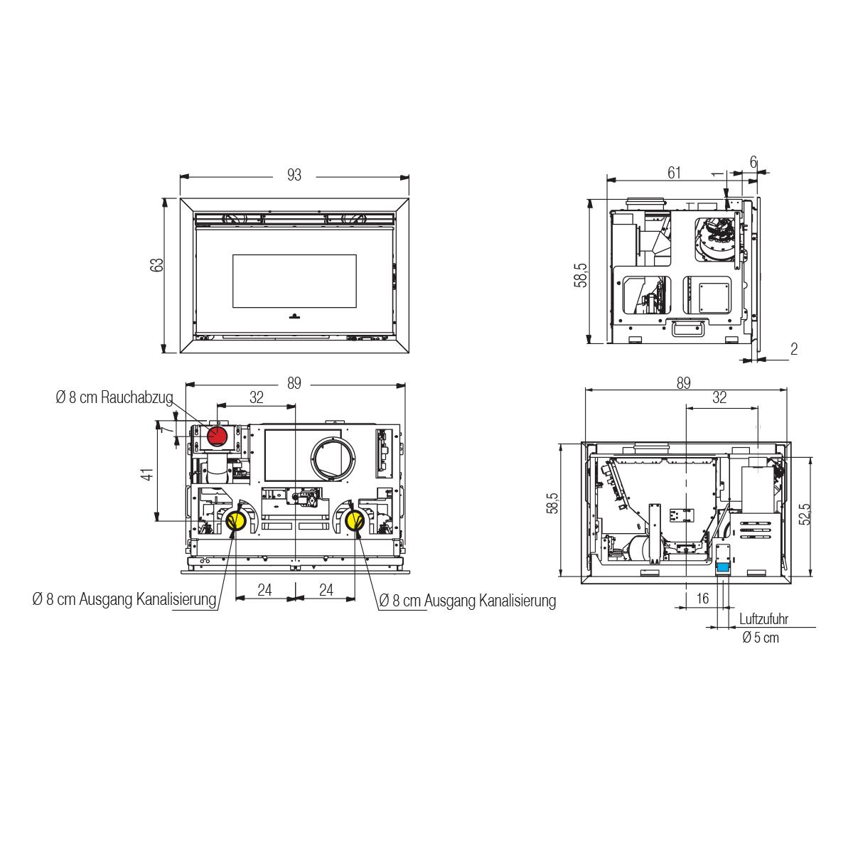 | Warmluftverteilung: | Kanalisierbar, abschaltbares Gebläse, mit Gebläse, reduzierbares Gebläse |