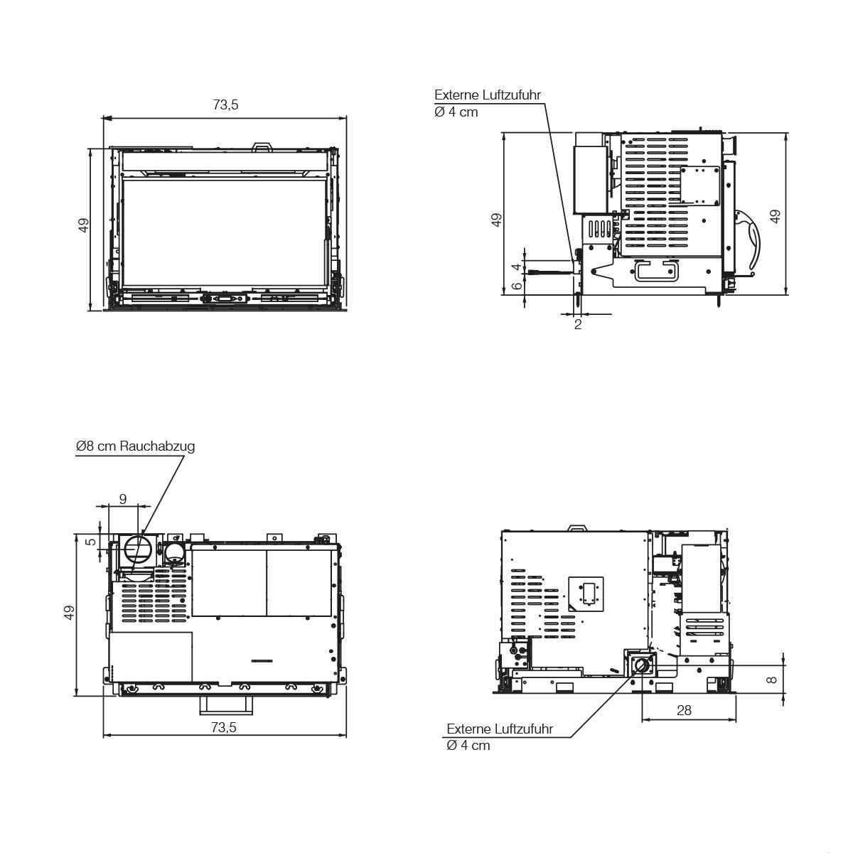| Maße (H x B x T) Pellet-Einfüllrutsche | 490 / 735 / 490 mm |