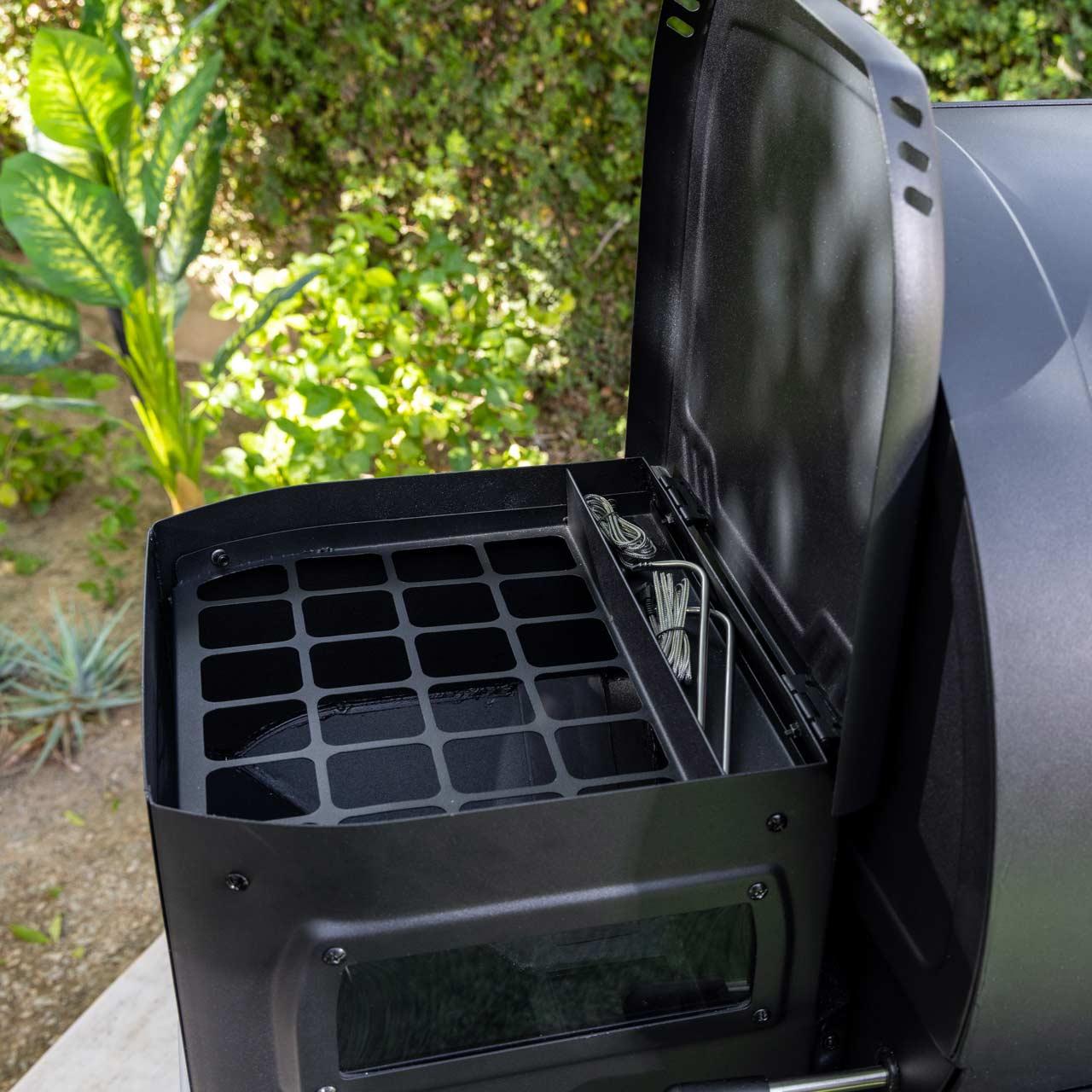 Außerdem schafft die Ablagefläche unter dem Grillbereich Platz für Pellets, Grillbesteck und weiteres Grill- und Räucherzubehör.