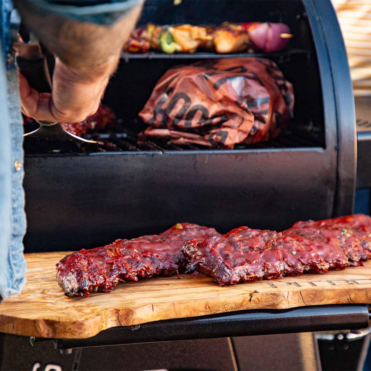Damit lässt sich das Grillgut beim Pelletgrill Pit Boss Navigator 550 sogar mit direkter Flamme scharf anbraten, wobei Temperaturen von bis zu 535 °C erreicht werden, was ideal für Steaks ist!Der Pit Boss Side Smoker für mehr Platz auf dem Grill