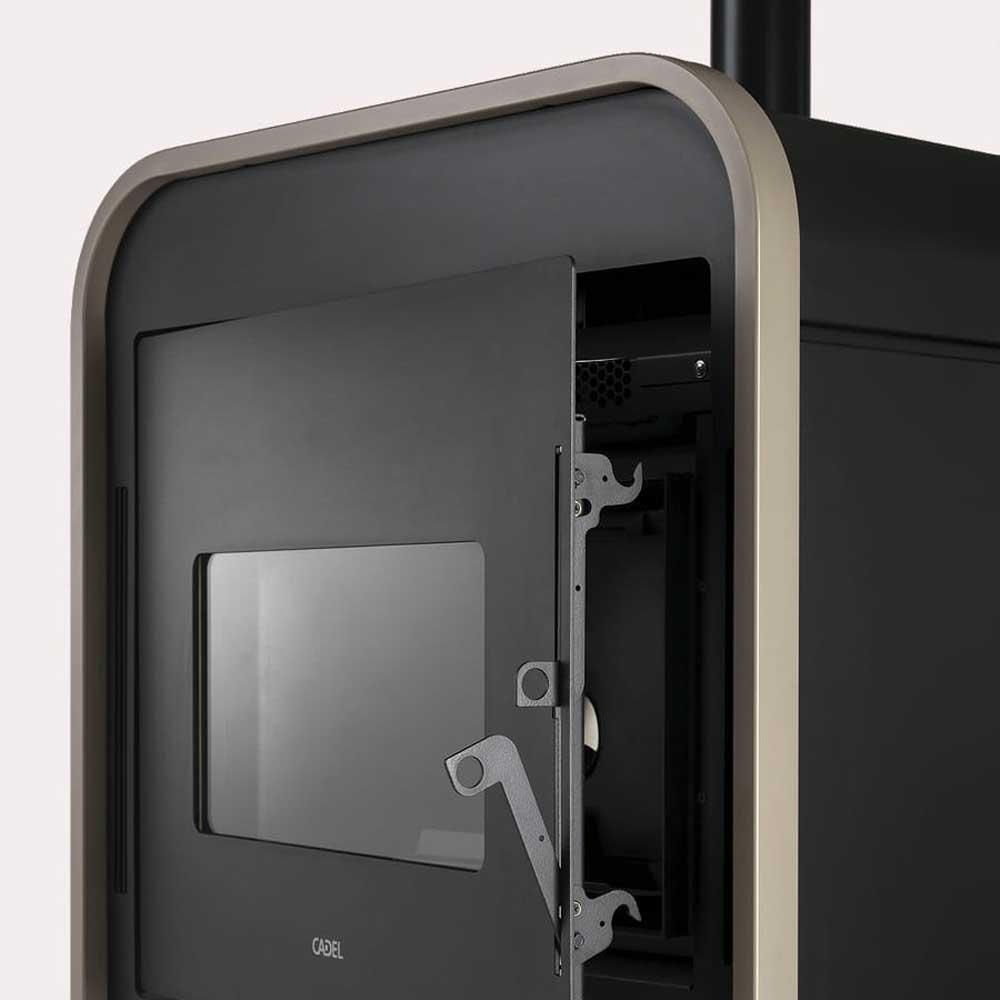 Frame ist ein Pelletofen, der mit seinem Stil voller Großstadt-Raffinesse und eleganten Füßen in zeitgenössisch oder rustikal eingerichtete Räume passt. Mit seiner großen Sicht auf die Flammen können Sie die Wärme und Gemütlichkeit genießen. Der als Optional lieferbare Bausatz für die Kanalisierung ermöglicht es Ihnen, mehrere Räume zu heizen und die Wärme im ganzen Haus zu verteilen Der Pelletofen Cadel Frame 9 ist ein wahres Multitalent.