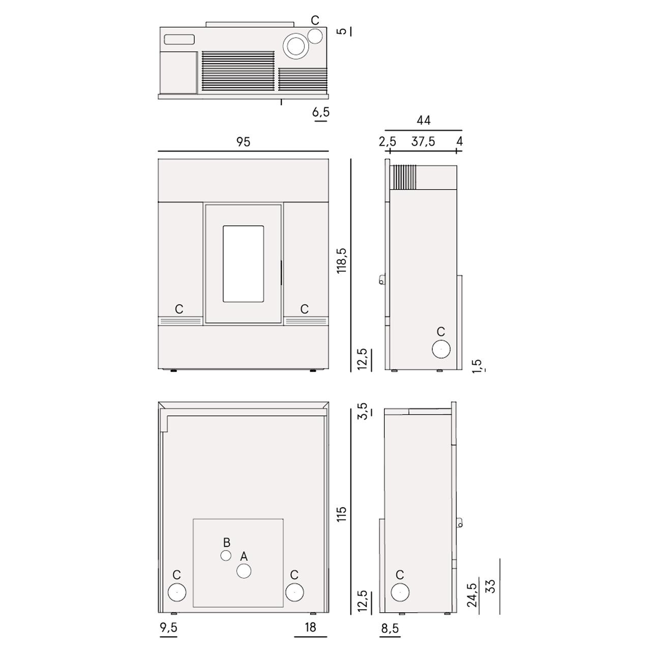 | Pelletverbrauch (pro Stunde) | kg/h | 0,9 - 3,3 |