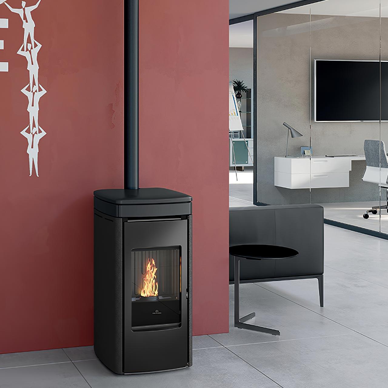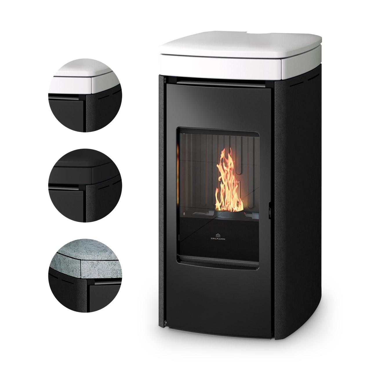 Pelletofen Edilkamin Yana: Eine Feuerstätte mit Top aus Keramik oder Naturstein.