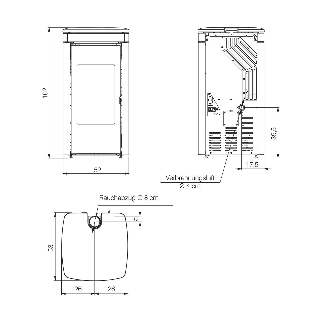 * Heiztechnische Merkmale gemäß EN 14785 Bei den genannten Daten handelt es sich um Richtwerte, die während der Zertifizierung durch die benannte Stelle unter Normbedingungen gemessen wurden.