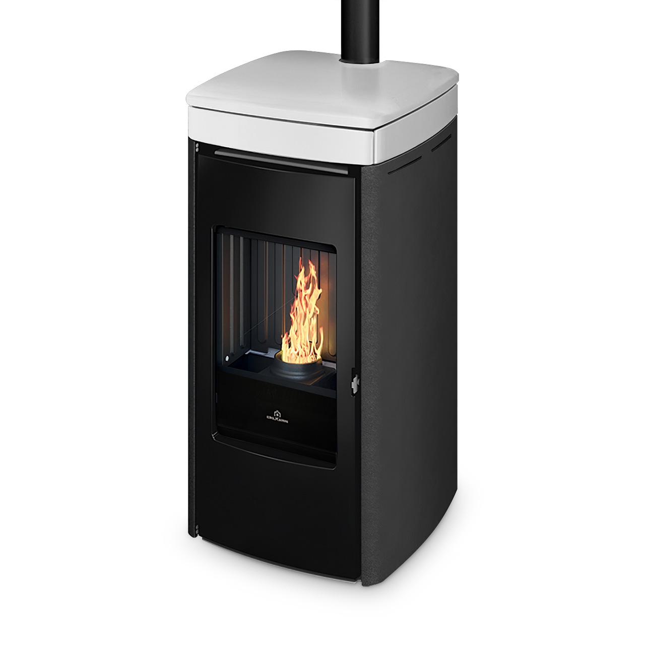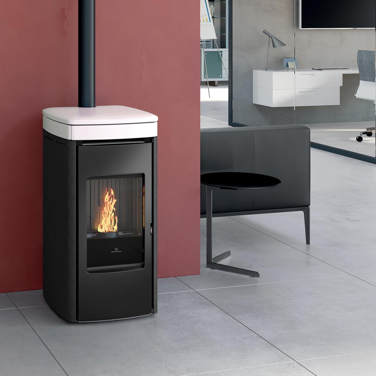 Pelletofen Edilkamin Yana Plus: Eine Feuerstätte mit Top aus Keramik oder Naturstein.