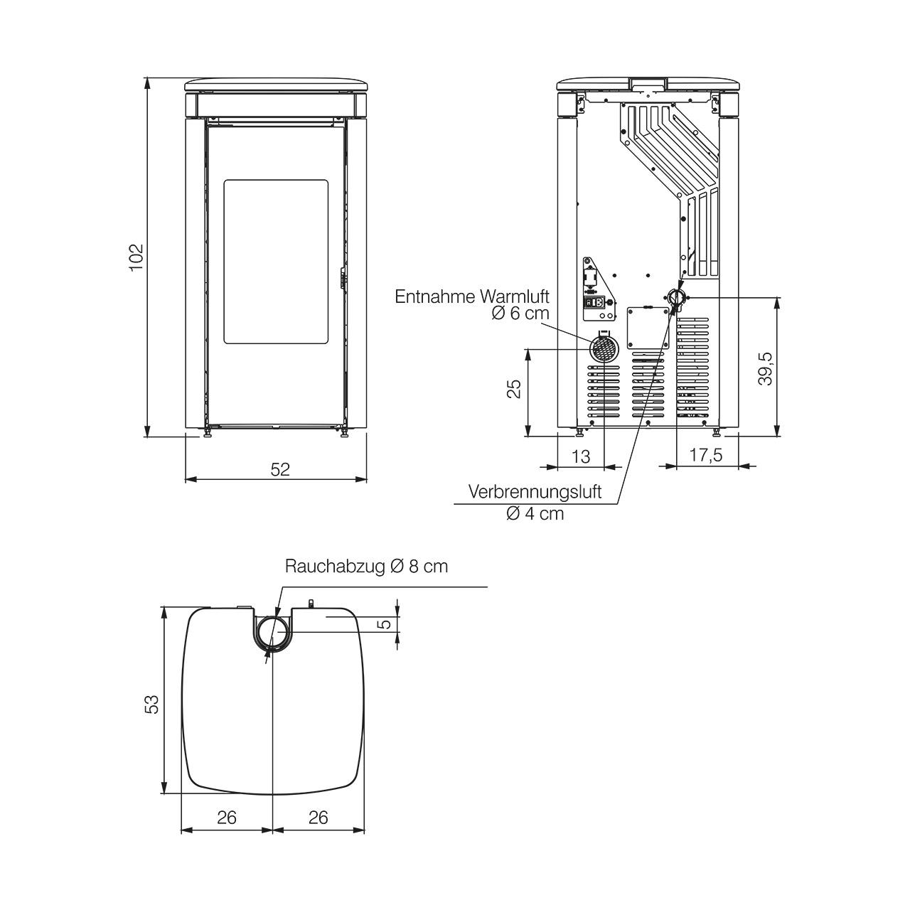 - Luftumleitungssatz (verteilt die warme Luft im Installationsraum, falls der Ofen nicht kanalisiert wird)