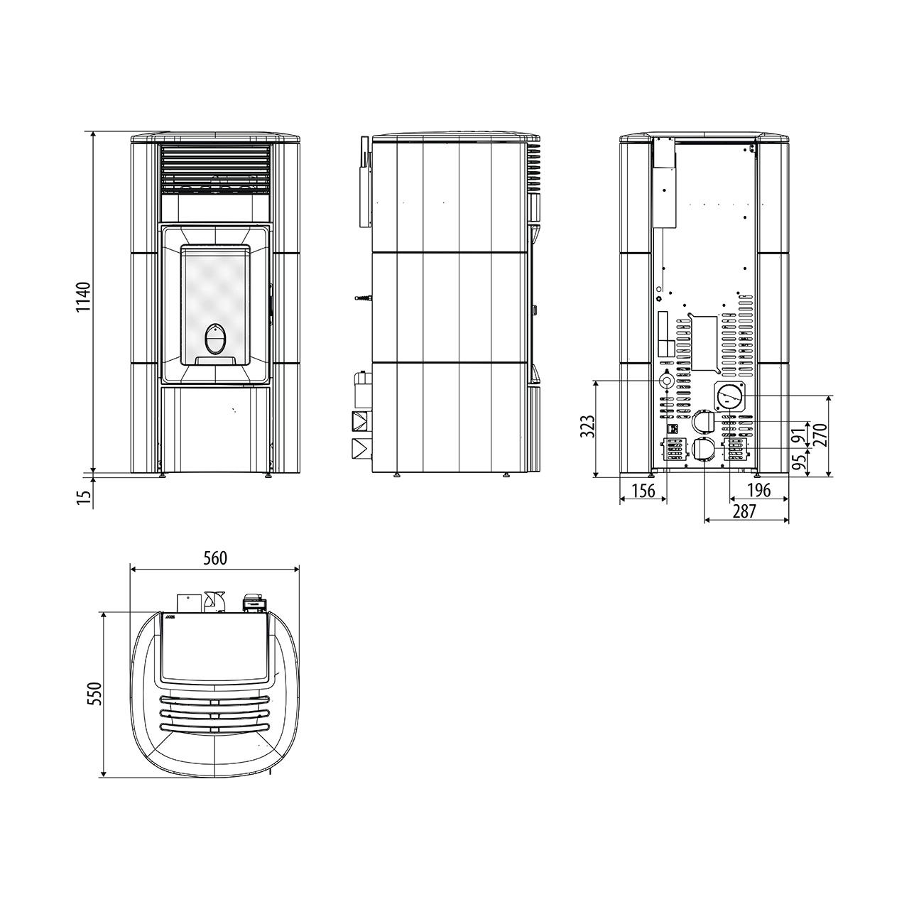- Pelletofen mit frontale Luftöffnungen