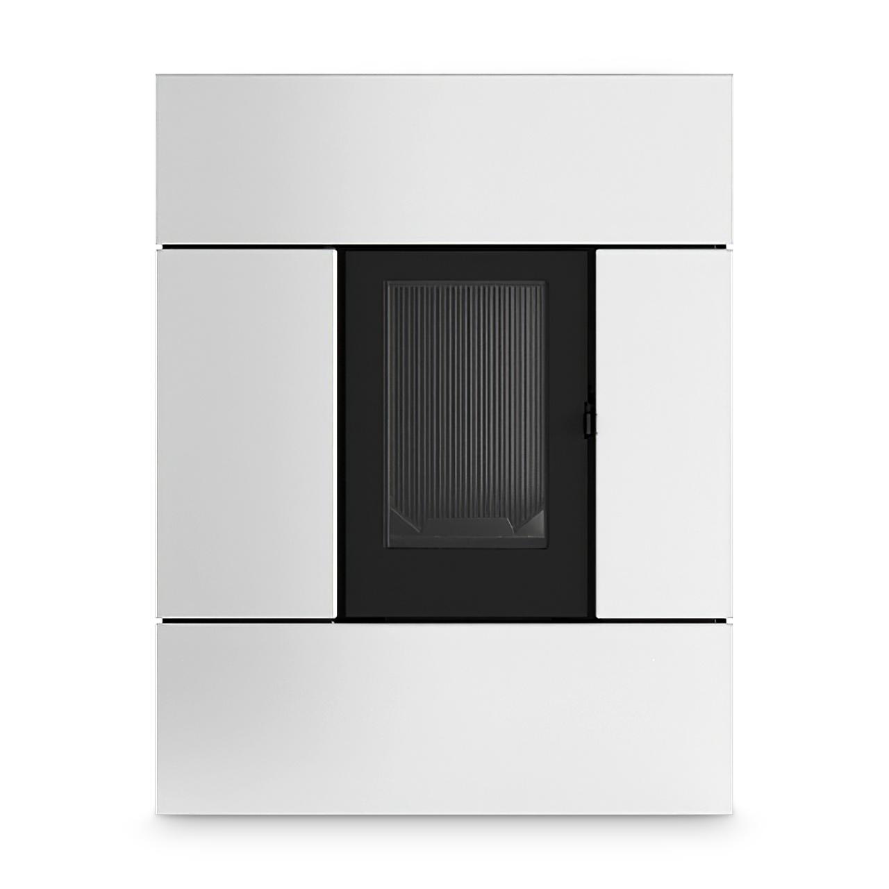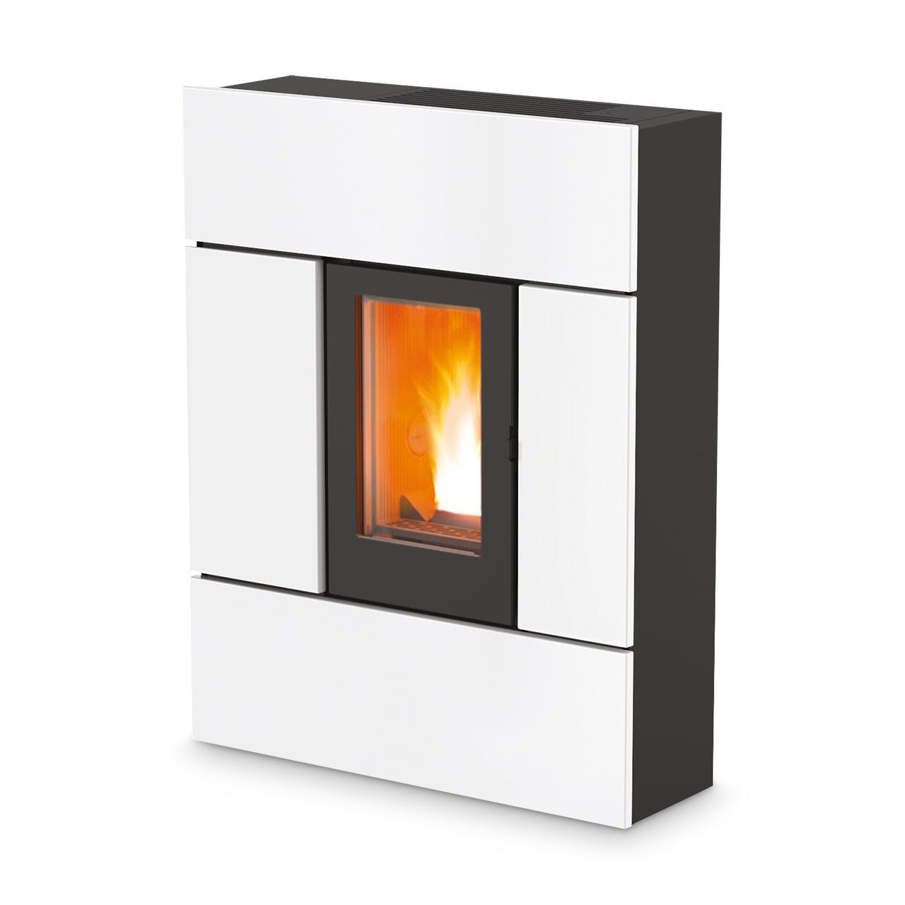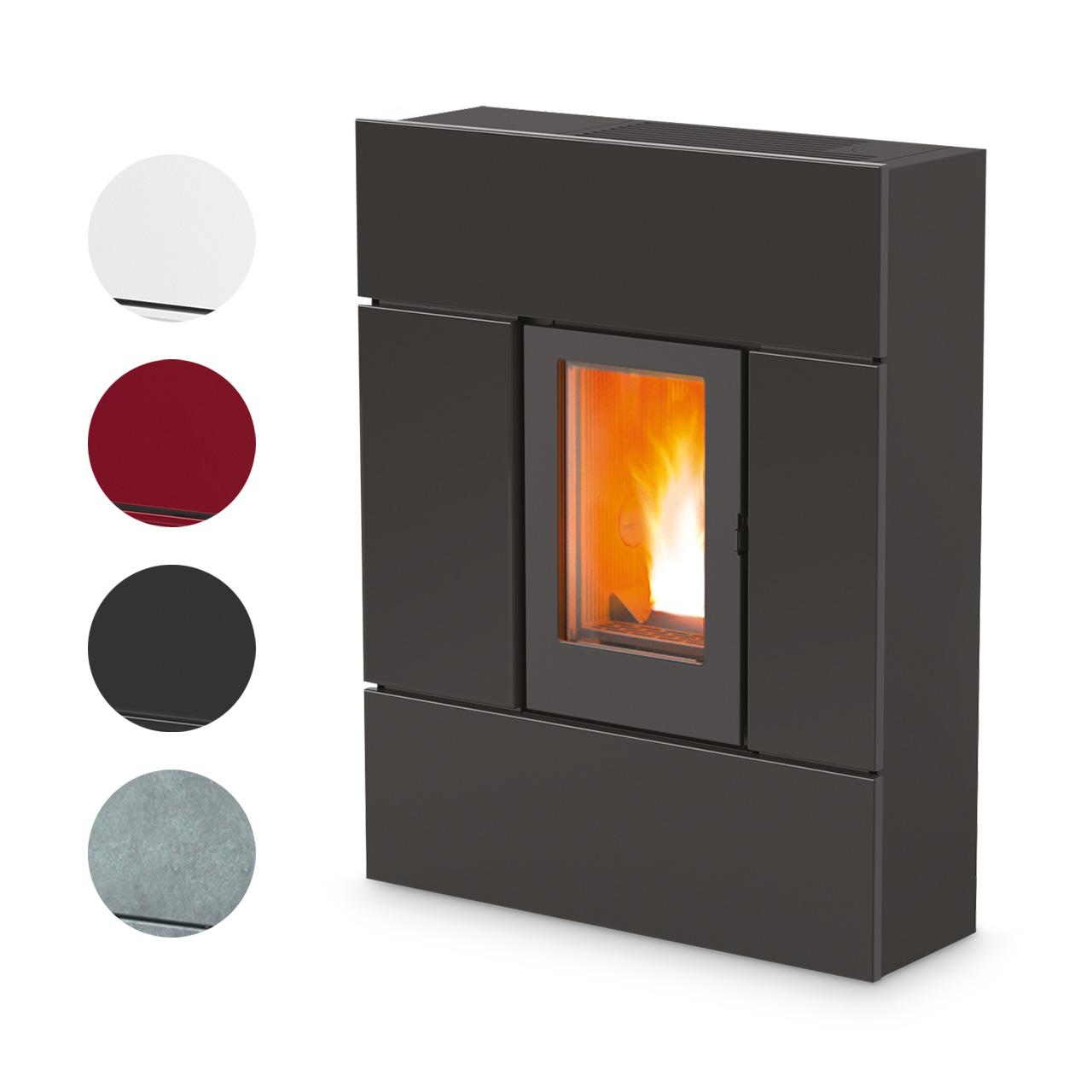 Kanalisierbarer "Slim"-Pelletofen mit mit Stahl-, Keramik- oder Natursteinfront